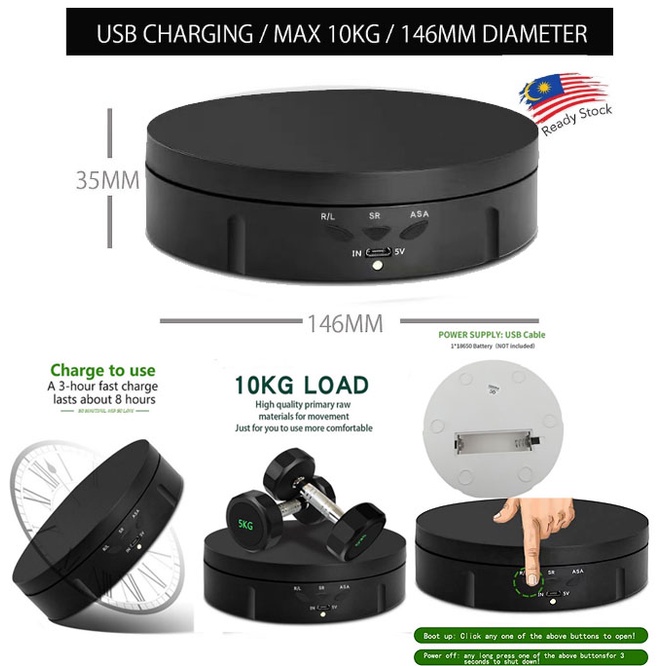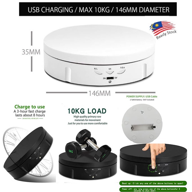 ! 360 showcase USB Electric Rotating Turntable Display Stand Turntable 8inch / 20cm Diameter