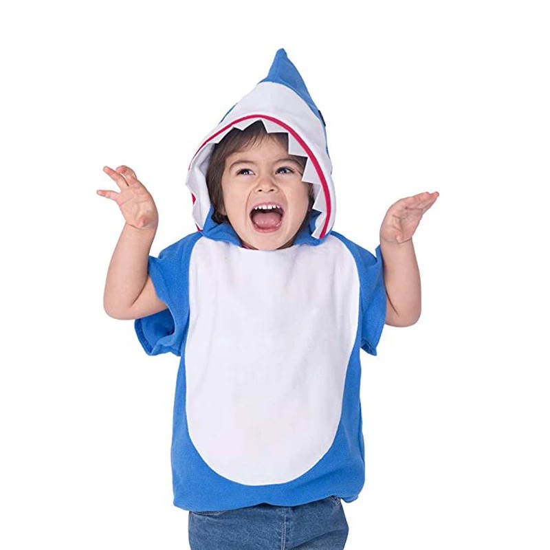 ❤Ready Stock❤Fashion Kids Ocean Shark Jumpsuit Cosplay Shark Costume Stage Clothing Fancy Dress With Baby Cute Shark Bag Halloween Christmas Costume Prop