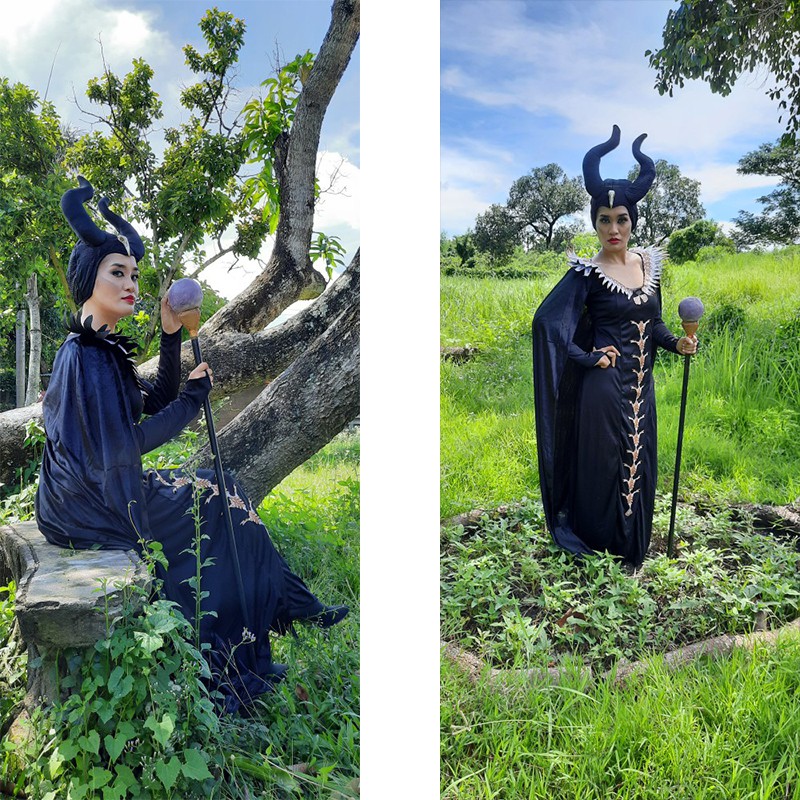 ❤Ready Stock❤Women Movie Maleficent Costume Evil Witch Cosplay Outfit Halloween Fantasia Party Fancy Dresses Christmas Gift