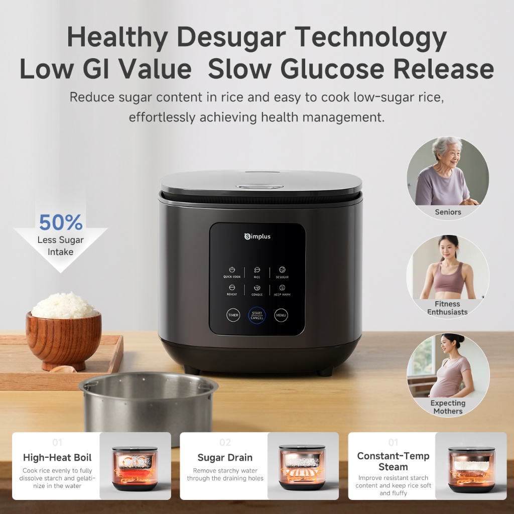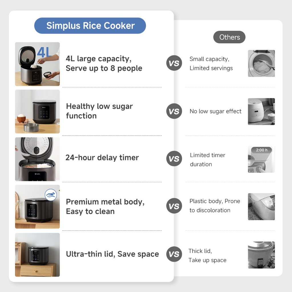 Simplus 2.7L Rice Cooker | Low-Sugar Low Carbon | 6 Preset Programs | 24H Reserve | Non-Stick Coating DFBA008