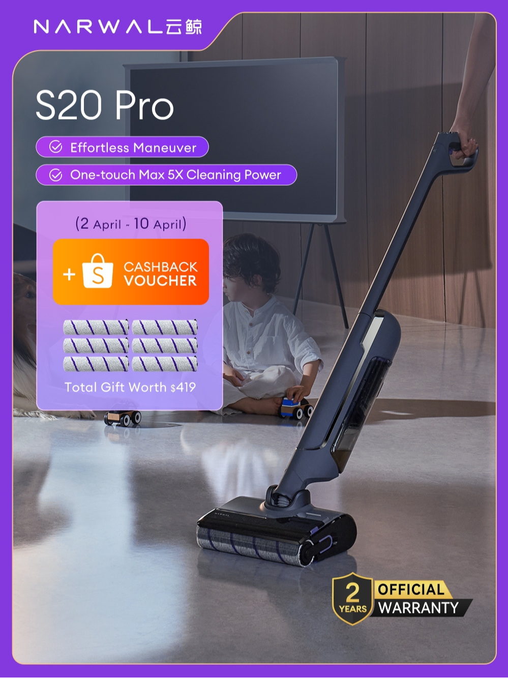 【Glides Easily】Narwal S20 Pro/S30 Wet and Dry Vacuum cleaner cordless| Tangle Free |strong suction| hand electric mop
