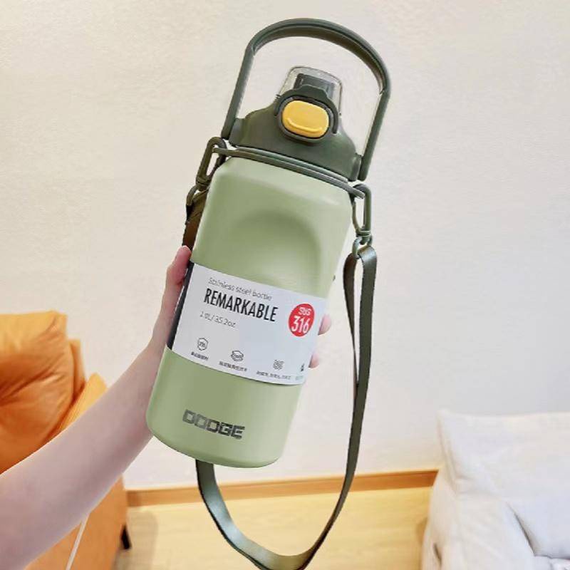 【LUCKY】Dodge Insulated Water Bottle Large Capacity 316 Stainless Steel Straw Cup Thermal Flask Vacuum Thermos Cup With Handle