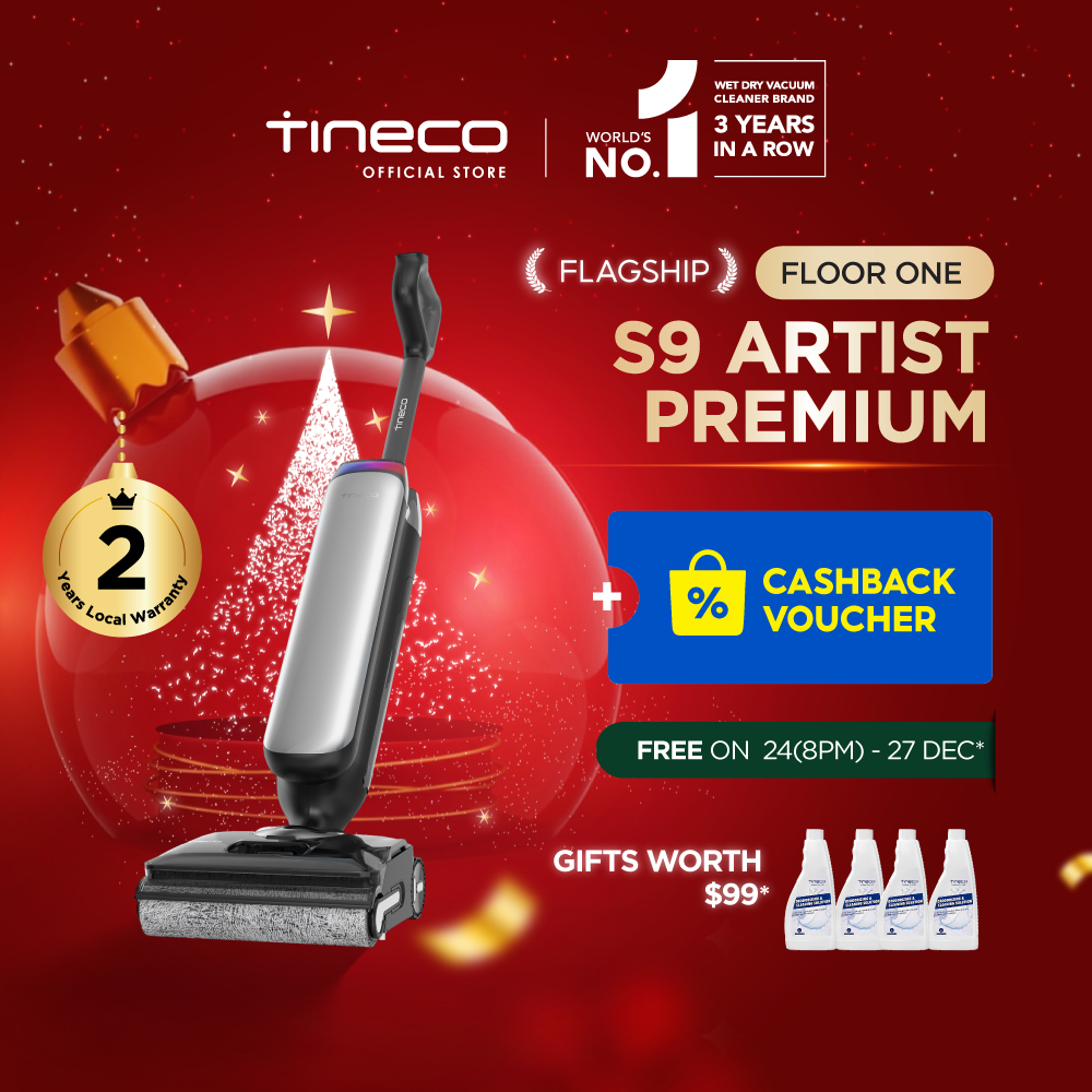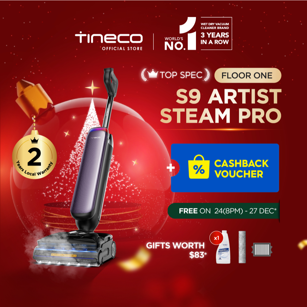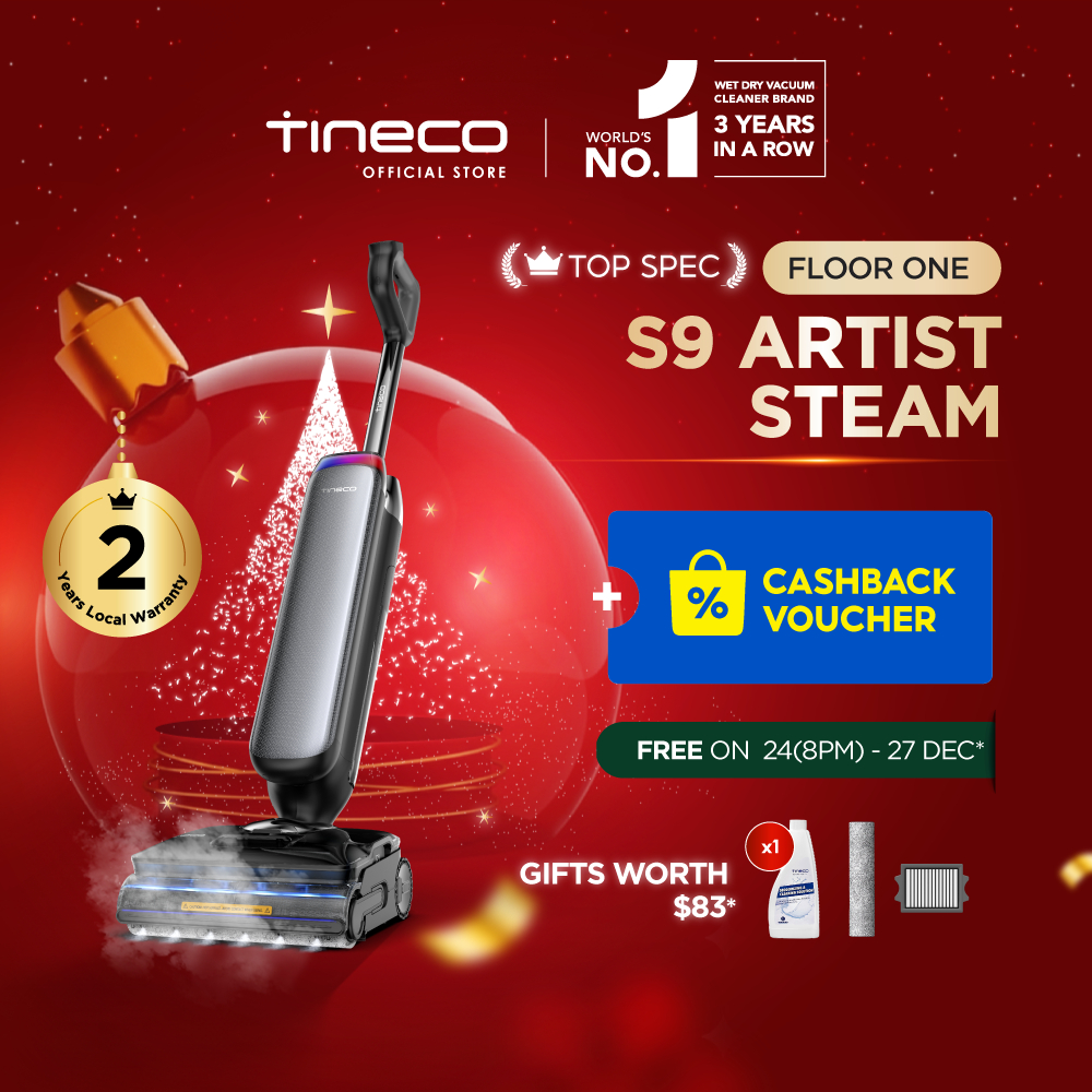 【TOP SPEC】Tineco Floor One S9 Artist Steam 160°C HyperSteam Layflat Wet Dry Vacuum Cleaner | 75 mins Runtime | 22kPa