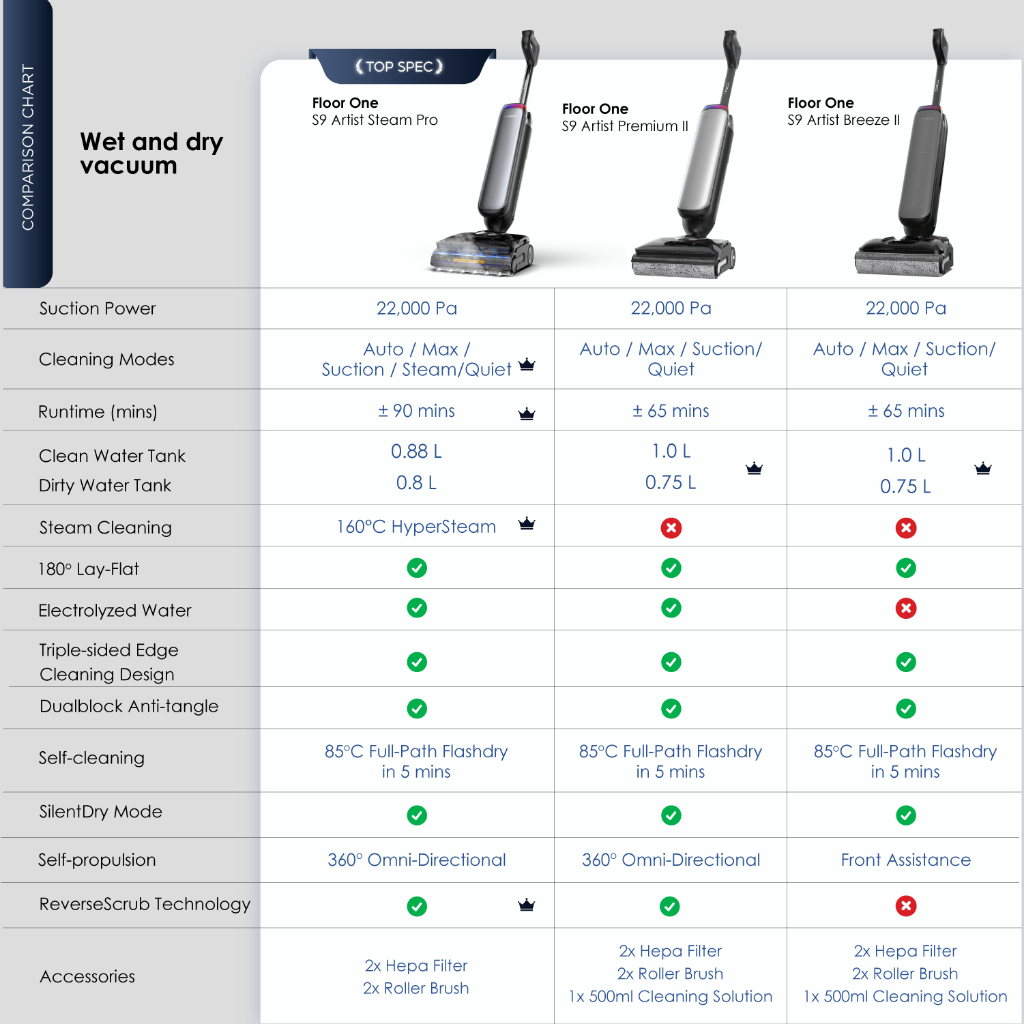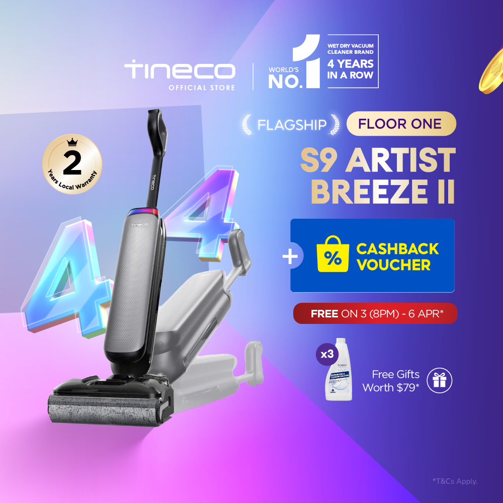 【TOP SPEC】Tineco Floor One S9 Artist Steam Pro 160°C HyperSteam Layflat Wet Dry Vacuum Cleaner | 90 mins Runtime | 22kPa
