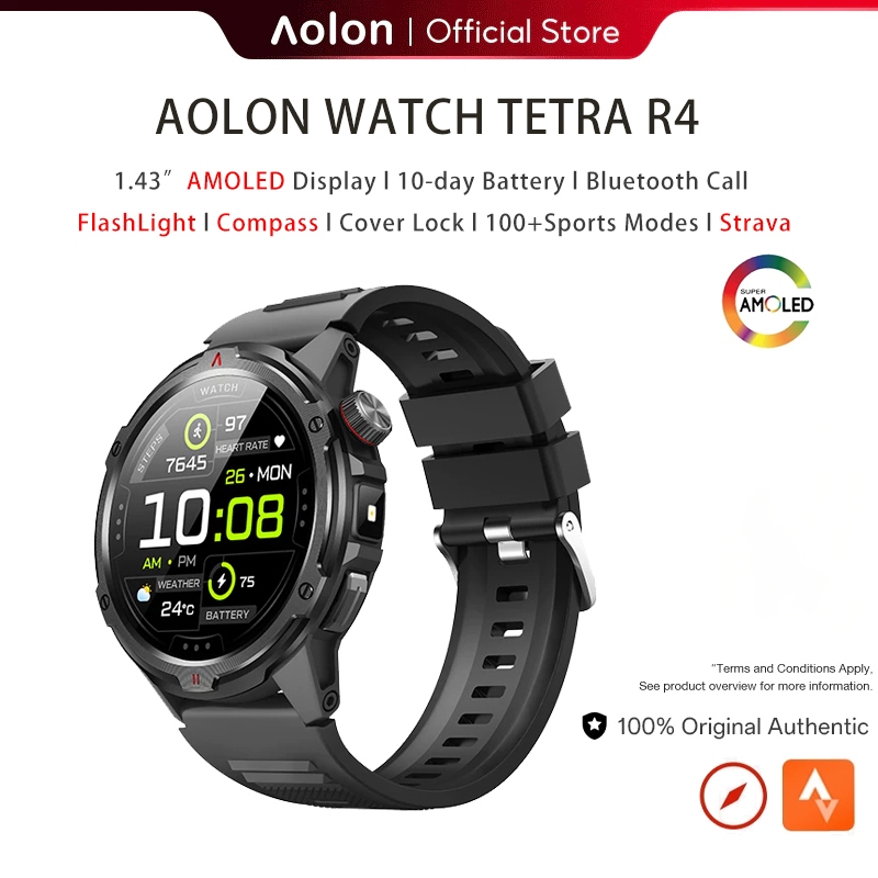 Aolon Tetra R4 Smart Watch Amoled AOD Display Cover Lock Altitude Barometer Compass Sports Modes