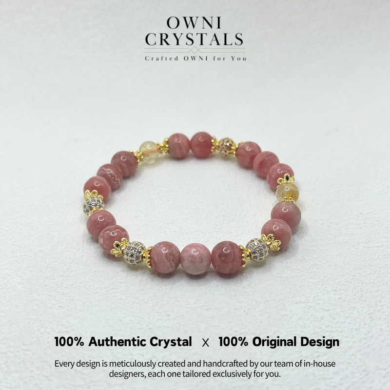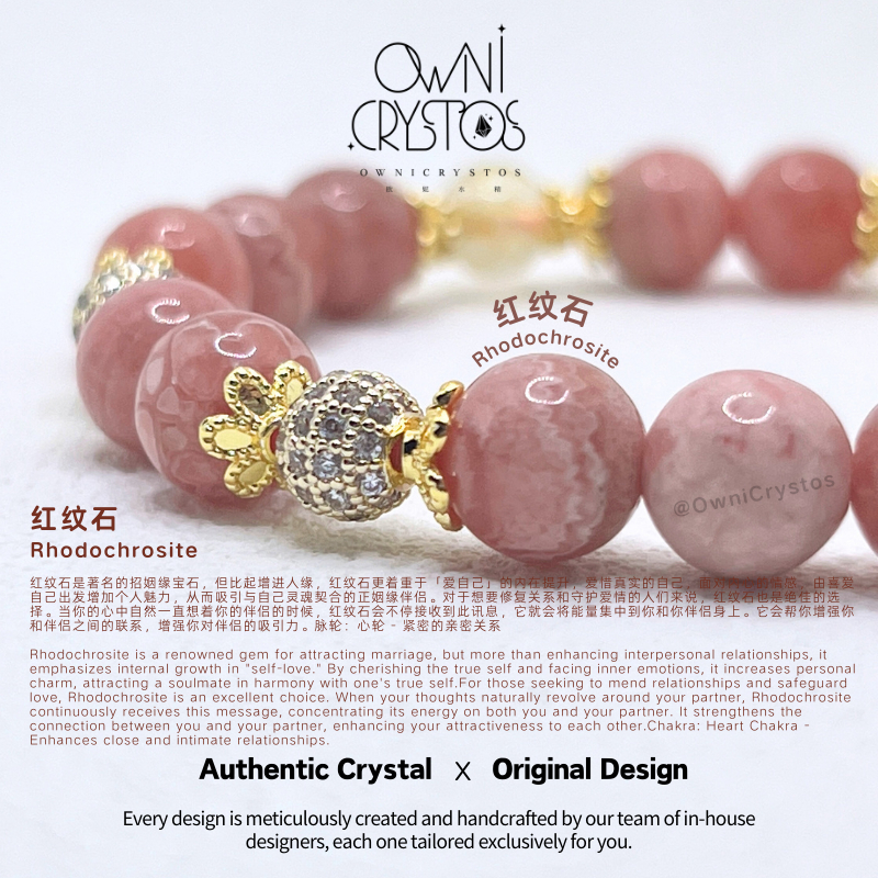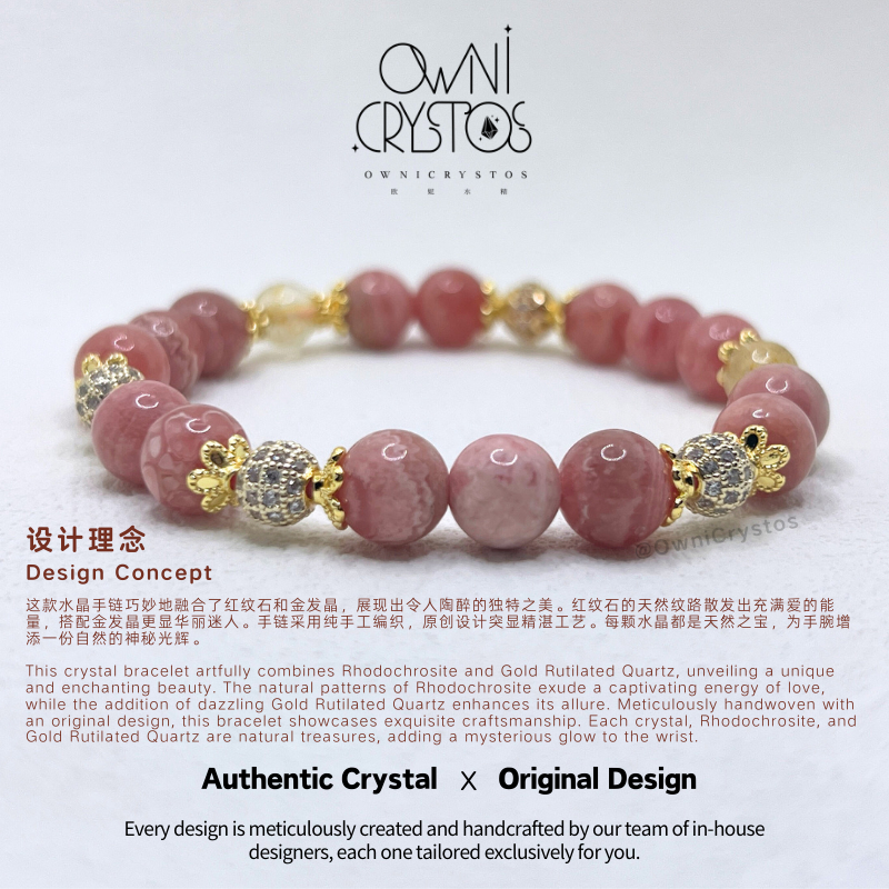 【OwniCrystos】Love Marriage Relationship Gold Rutilated Quartz Rhodochrosite Natural crystal bracelet bangle for woman 红纹石 金发晶 水晶手链手串 婚姻 姻缘 爱情