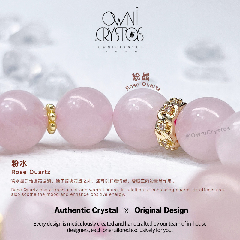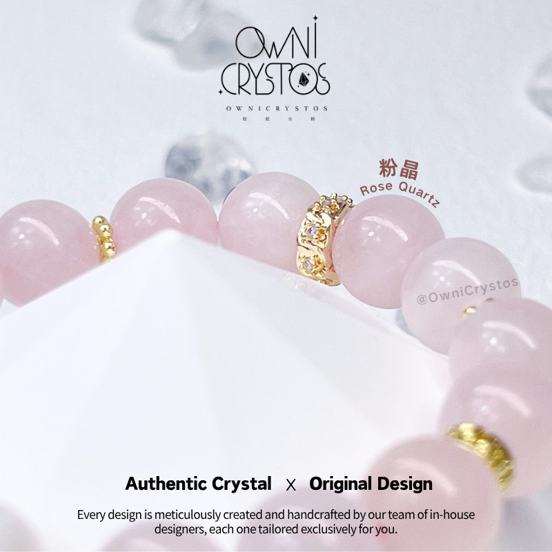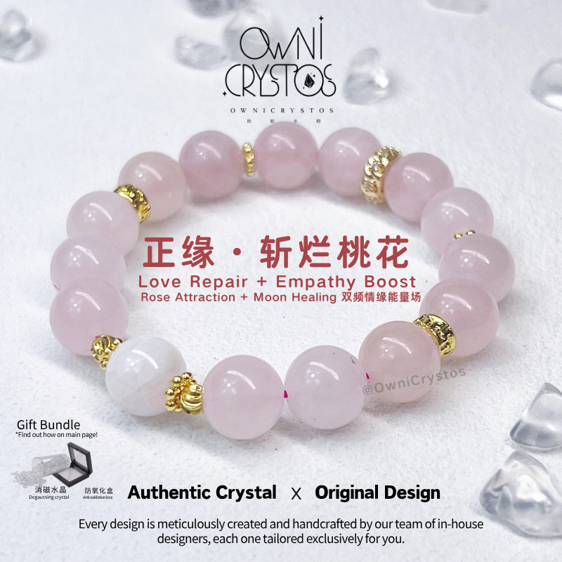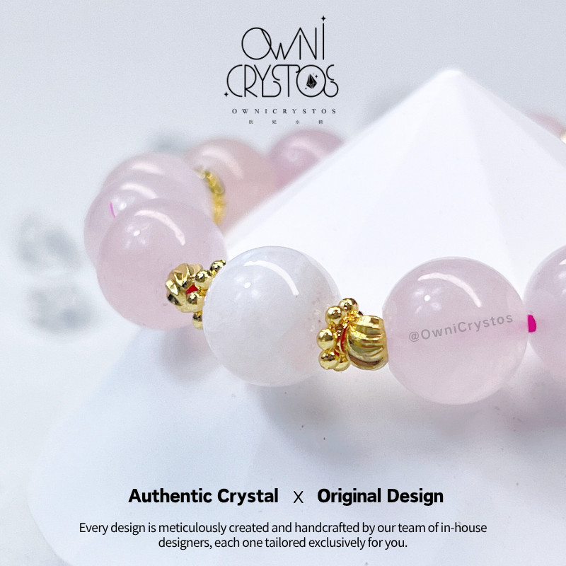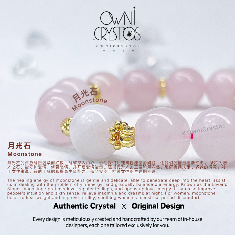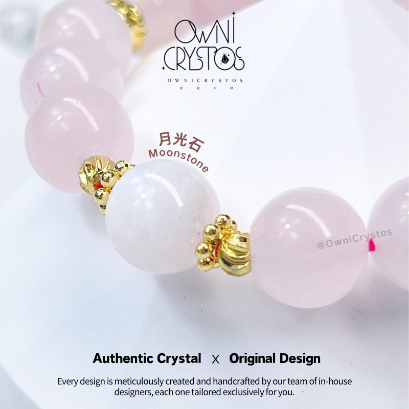 【OwniCrystos】The stone of Love Moonstone Rose quartz Natural crystal bracelet bangle for woman 粉晶 月光石 水晶手串手链