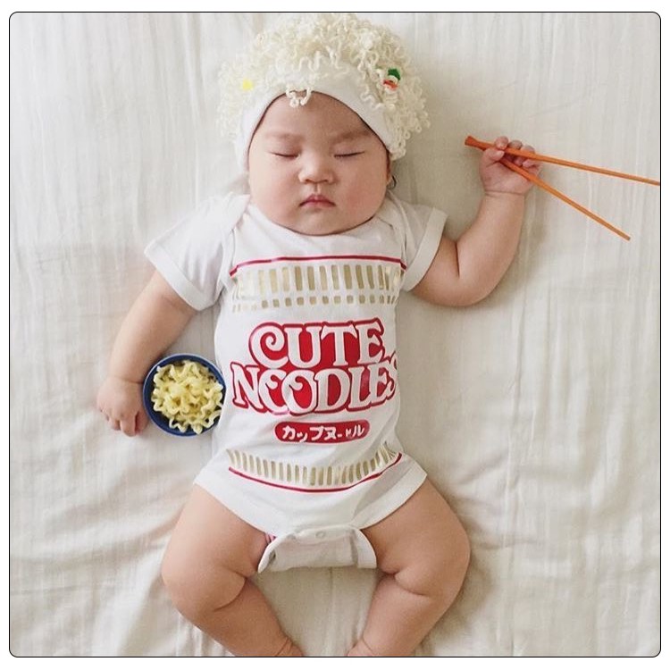 【Ready Stock】Baby One-Piece Kids Jumpsuit Fashion Instant Noodles Design Short Sleeve Romper