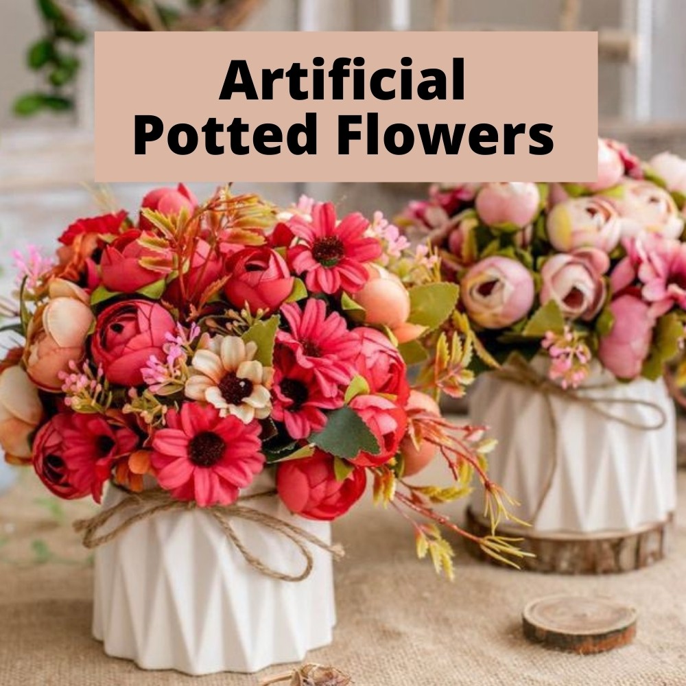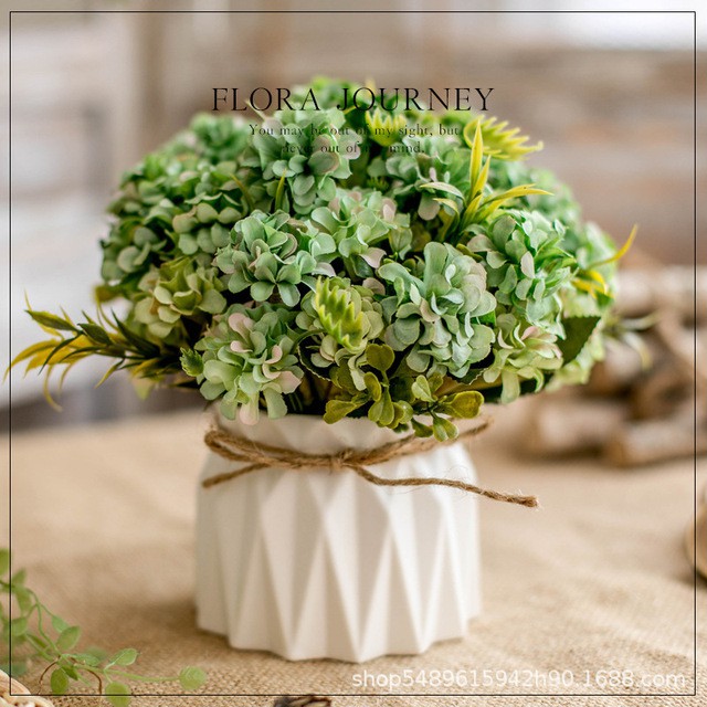 【SG】16CM Artificial Potted Flowers Fake Flower Ceramic Vase Pot Balls Bonsai for Home Decor Wedding Windowsill