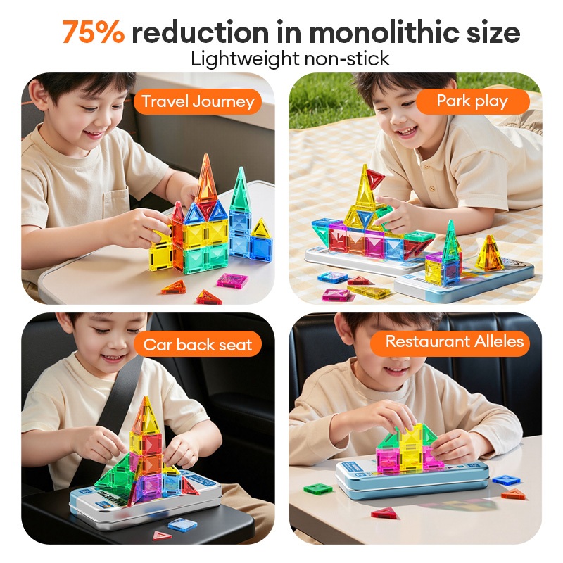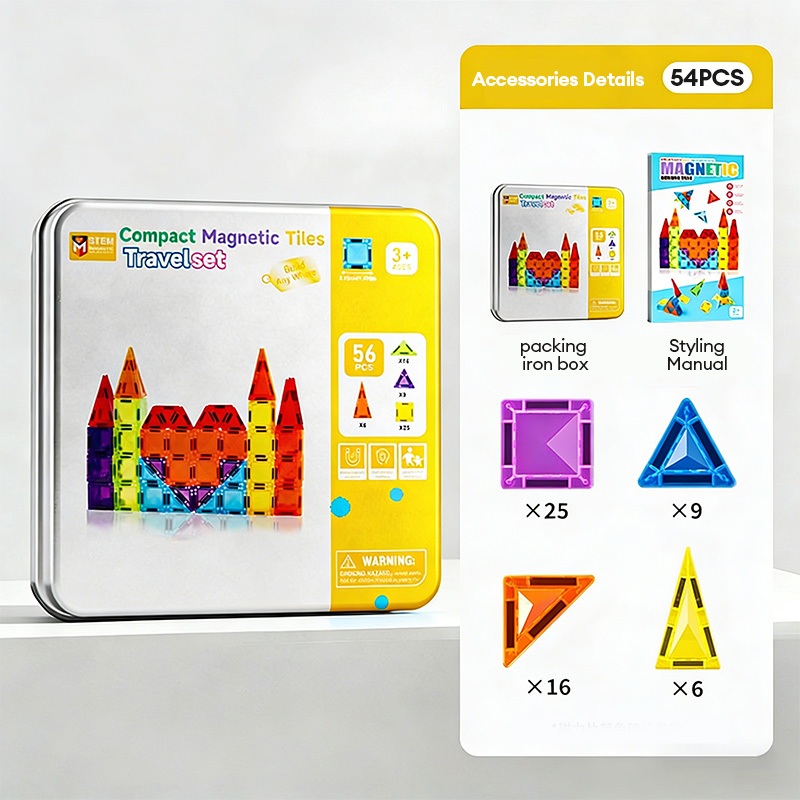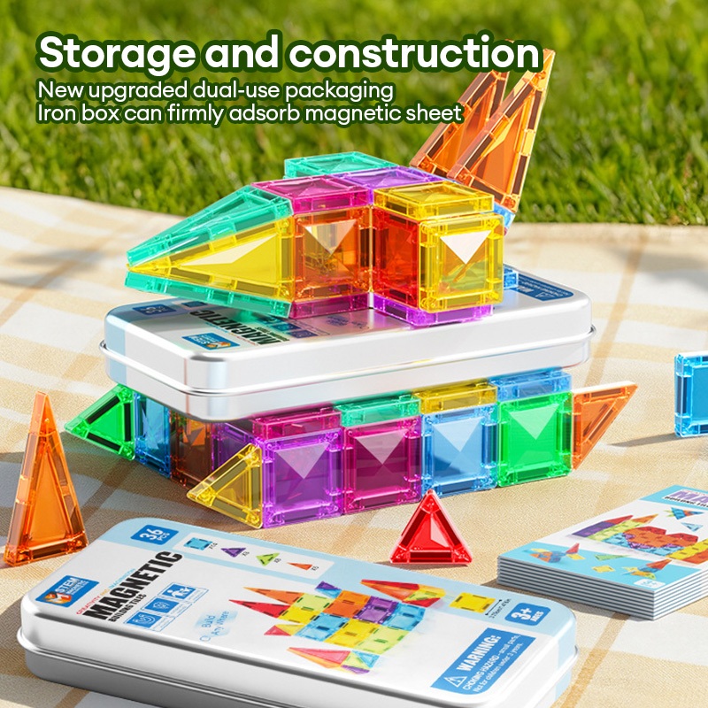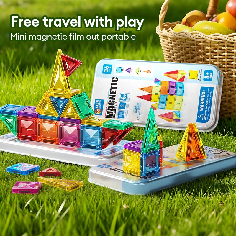 【SG】42/36pcs Mini Magnetic Sheet Color Window Magnetic Building Blocks Portable Travel Iron Box Set (3-6 years old)