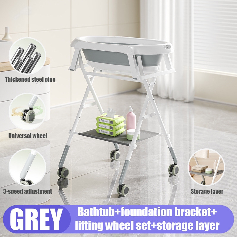 【SG-SPOETRY】Baby Bath Tub with Stand Baby Shower Stand Foldable Bath Tub for Baby without Bending Over Height Adjustable