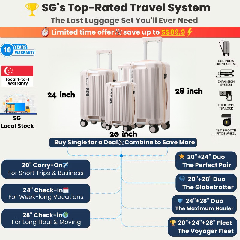 【SG STOCK】 Cabin Luggage 20/24/28 Inch Widen Luggage Top with Laptop Compartment Lightweight行李箱
