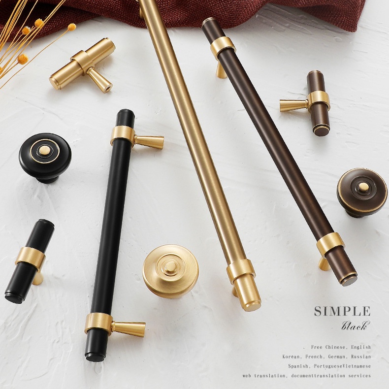 【Solid Brass】Golden European T Bar Handles Drawer Knobs and Pulls Kitchen Cabinet Handle and Knob Furniture Hardware Handles