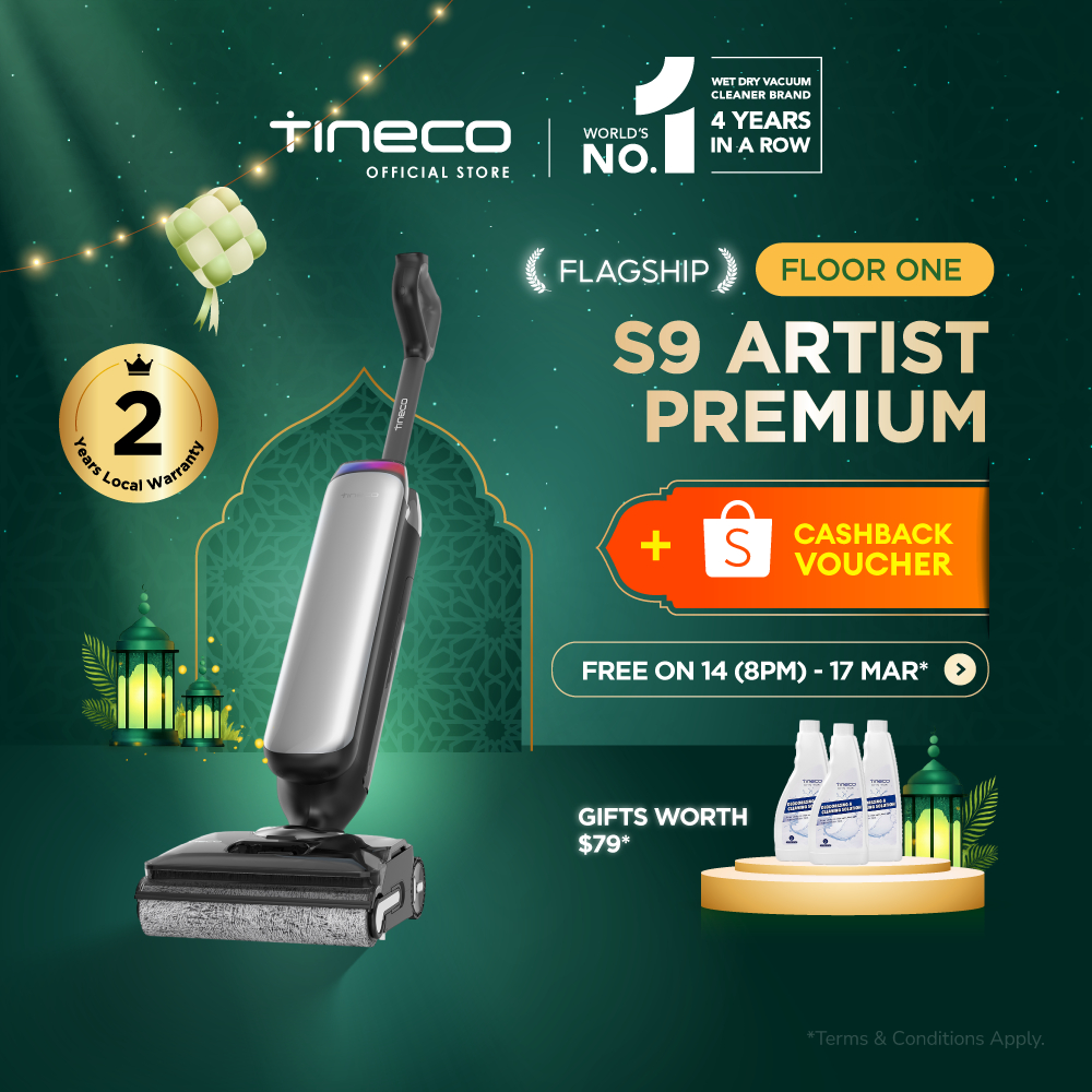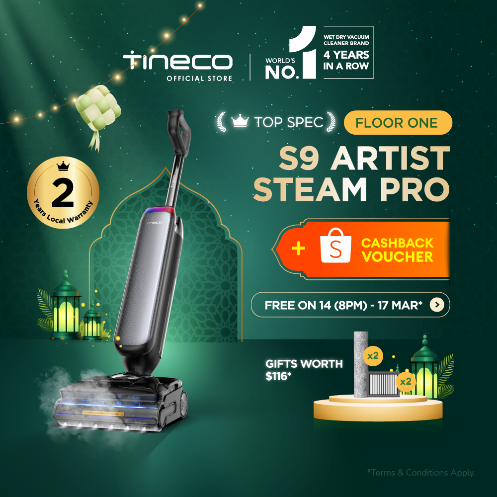 【TOP SPEC】Tineco Floor One S9 Artist Steam Pro 160°C HyperSteam Layflat Wet Dry Vacuum Cleaner | 90 mins Runtime | 22kPa