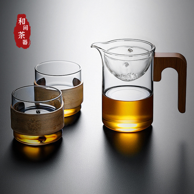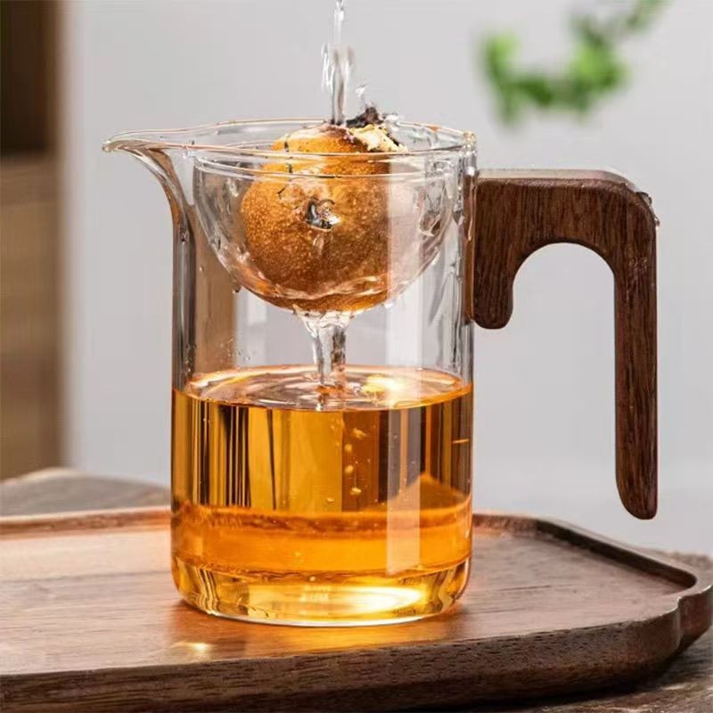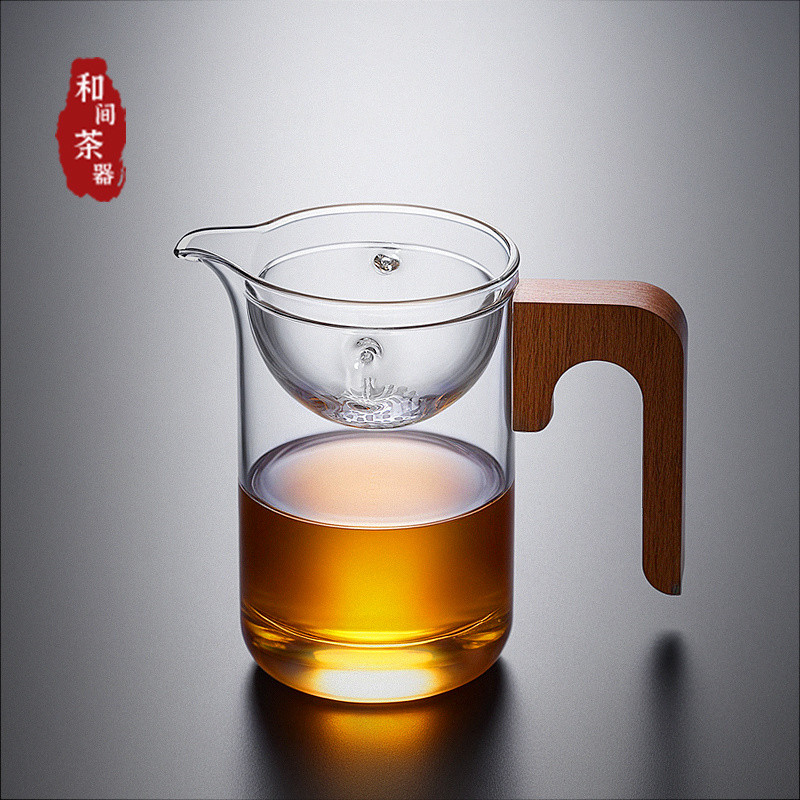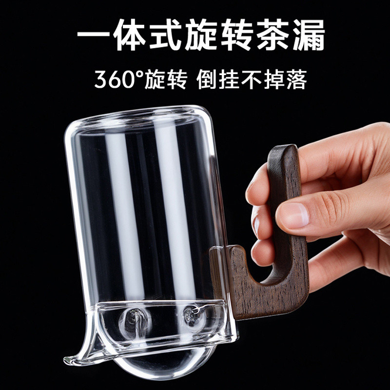 【Yuanyi】 Tea kettle rotary glass tea kettle tea water separation cup rotary filter fair cup tea kettle tea set glass male cup/玻璃泡茶杯 旋转茶漏 玻璃公杯