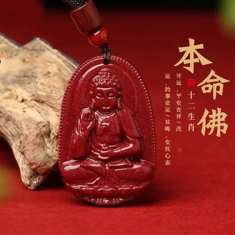 十二生肖本命佛守护神虚空藏千手观音大日如来文殊普贤菩萨本命年辟邪招财护身符朱砂吊坠 Buddha Guanyin Cinnabar Pendant (小号)