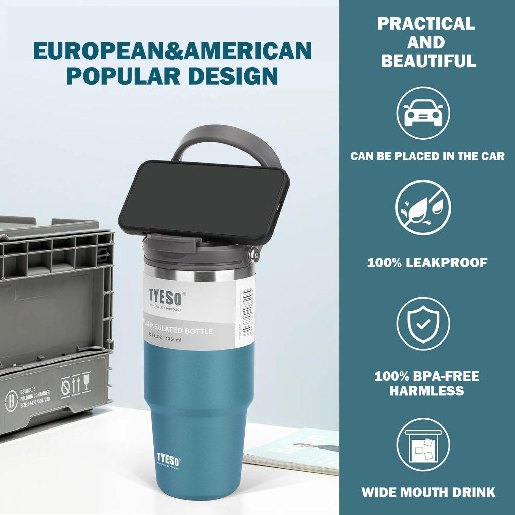 𝐓𝐘𝐄𝐒𝐎® Original Vacuum Insulated Straw Bottle Tumbler Coffee Mug With Straw/Handle TS-8829/TS-8830