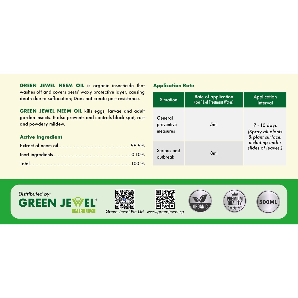 Green Jewel Organic Neem Oil - Organic Garden Insecticide, Fungicide & Miticide, (Concentrate) 500ml