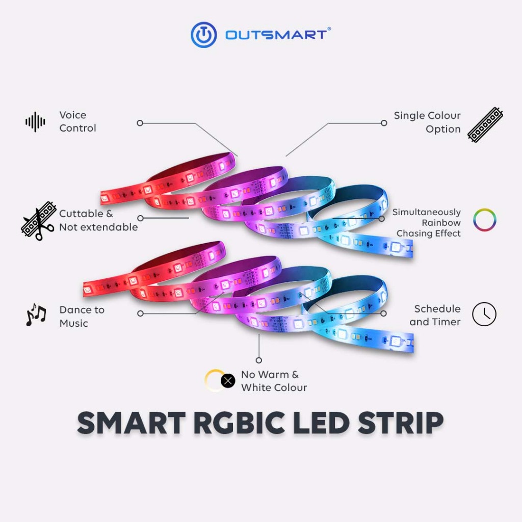 Outsmart WiFi Smart LED Strip Light RGBIC – Dream Color Ambient Lighting, App & Voice Control