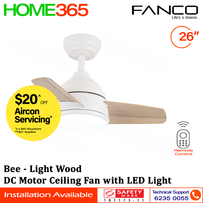 ($1 REPLACEMENT) Fanco DC Motor Ceiling Fan with Remote Control & LED Light 26" Bee