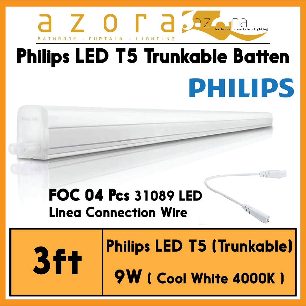 ( Bundle of 8 Pcs ) Philips LED T5 / 3ft Trunkable Batten & FOC 04 Pcs Wire Connection Wire