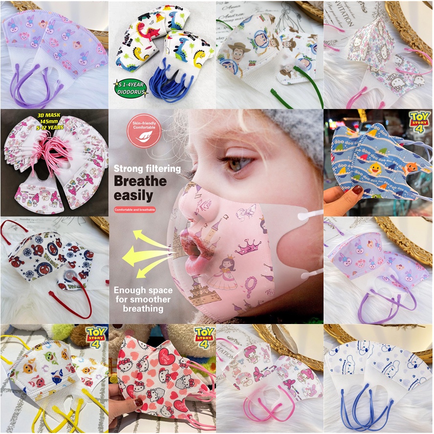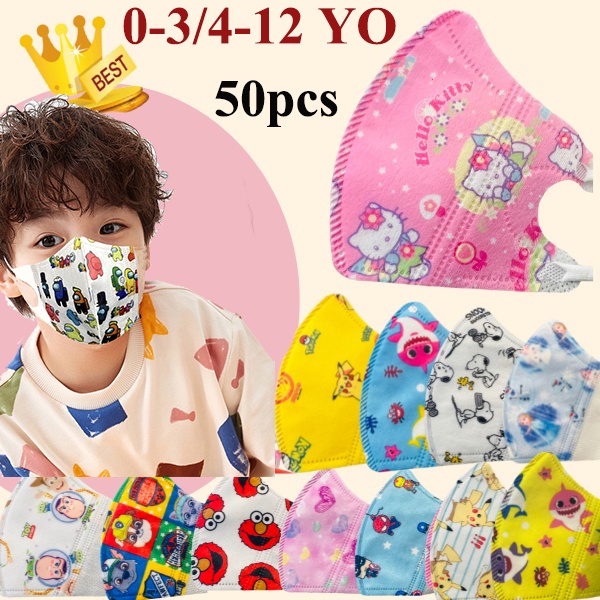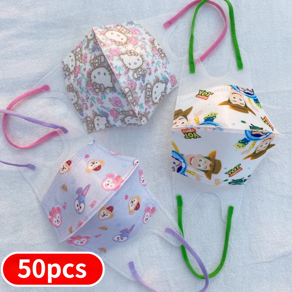 (0-12 Years Old) 50 Pcs Children Mask 3D Child Mask 3D Kid Mask Soft Ear Straps