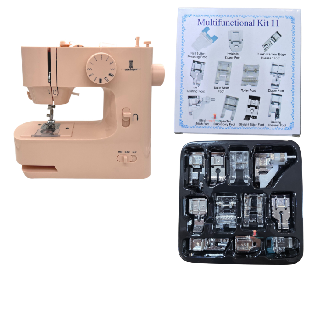 (1 to 1 Training) Stitch4you Peachy Pink Topaz Portable Sewing Machine with Battery Operated/12 stitches