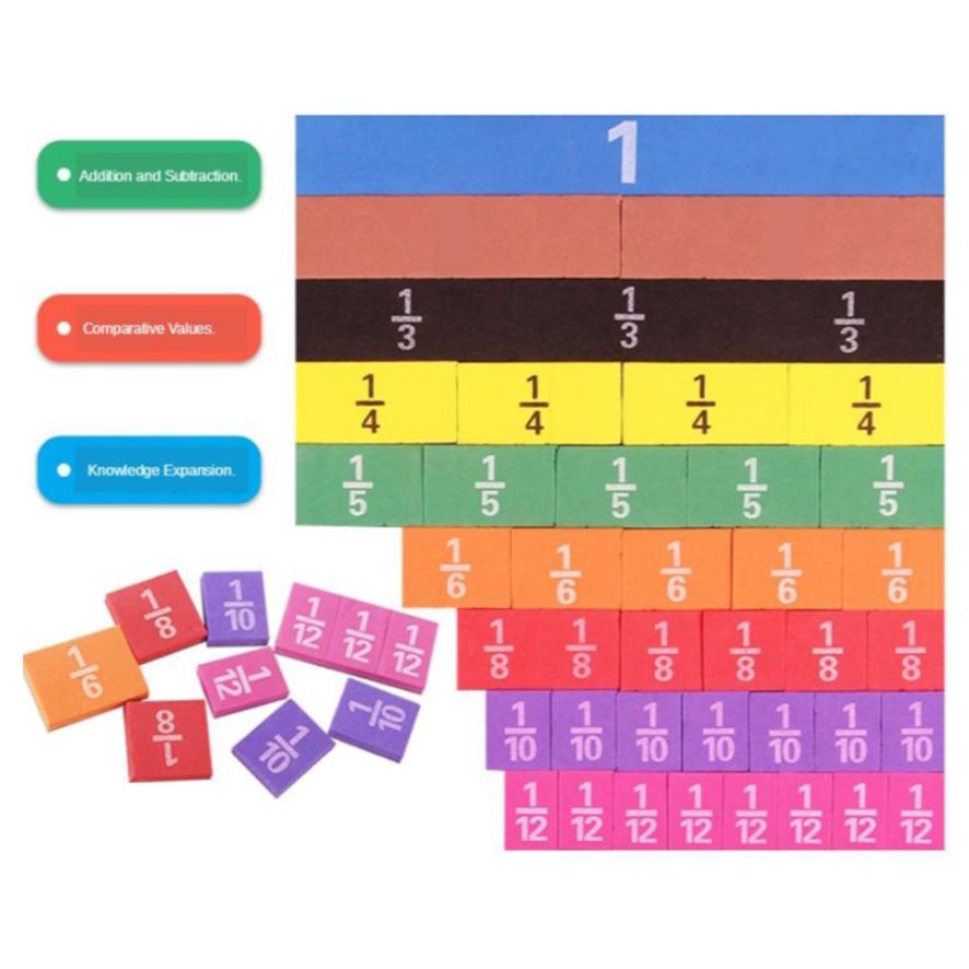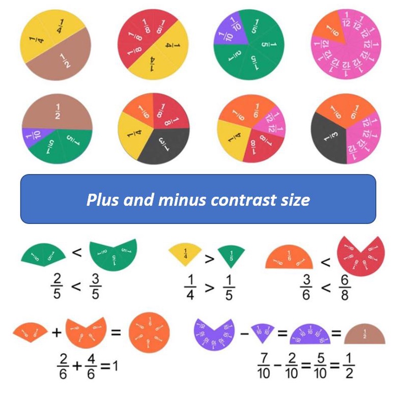 (102-pc) Math Magnetic Fraction Tiles and Circles Learning Study Blocks Toys Set Cognitive Skills Learning Aid Fraction