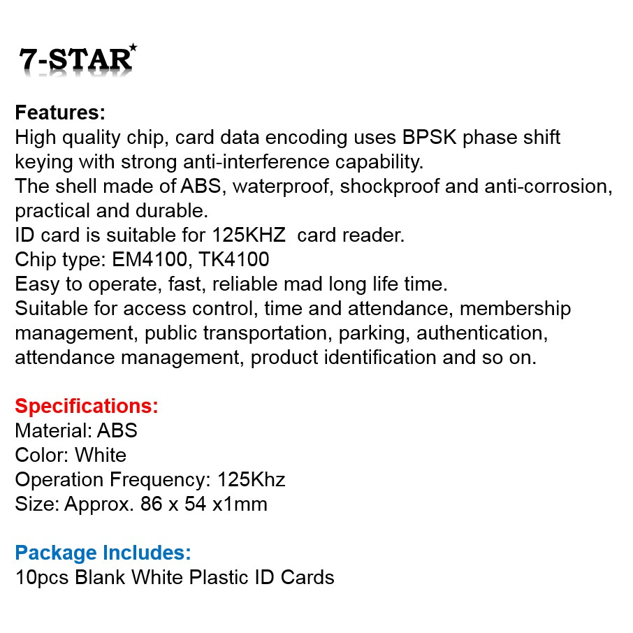 (10PCS) White 125Khz RFID Access Proximity Card for Door Access Biometric Control System [Model No: RFID-C]