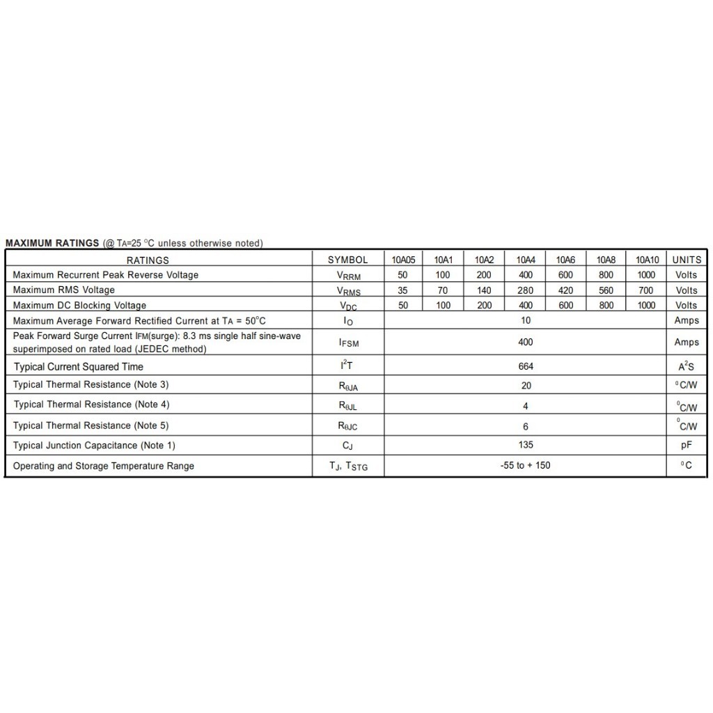 (10pcs) 6A10 10A10 20A10 Rectifier Diode Power Diode - R-6 - 6A Diode 10A Diode 20A Diode 1000V Diode