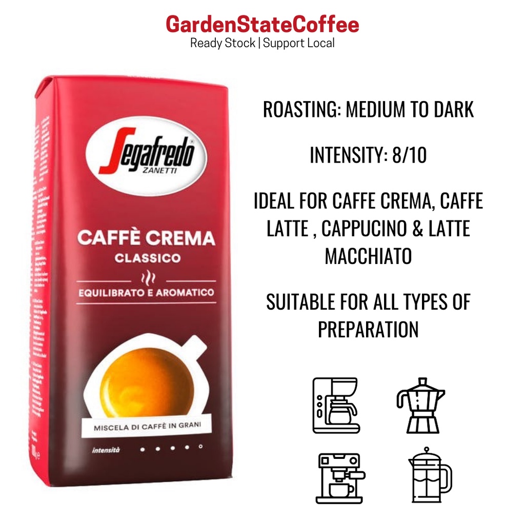 (1kg) Segafredo Caffe Crema Classico, Whole Coffee Beans. Medium to dark roast, 8/10 intensity