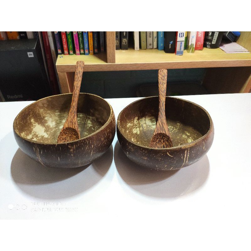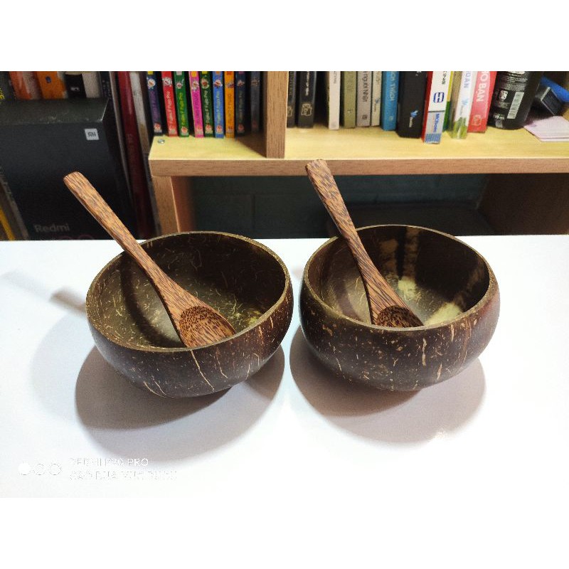(2 Sets) Combo Coconut Shell Bowl + Coconut Wooden Spoon