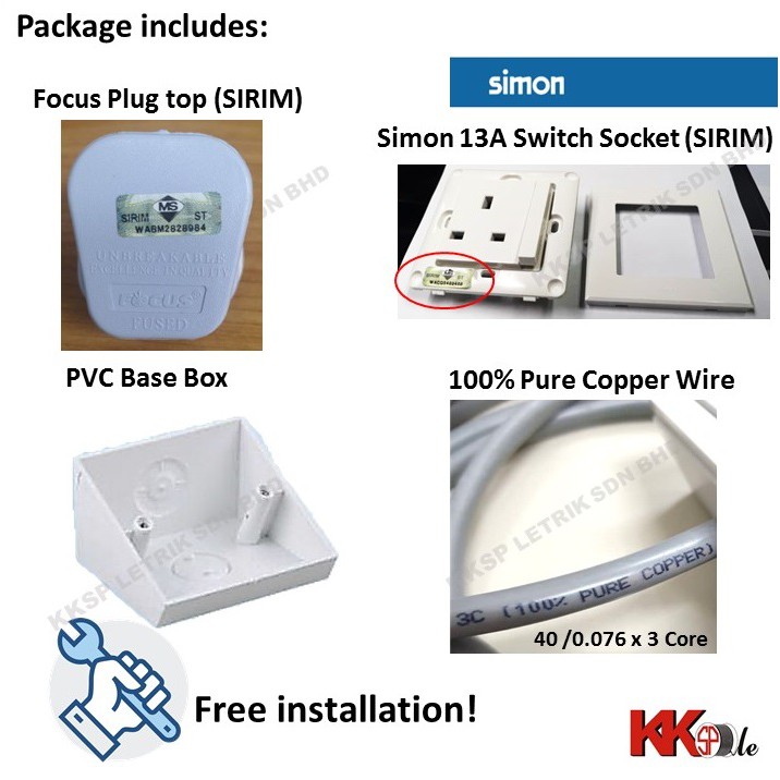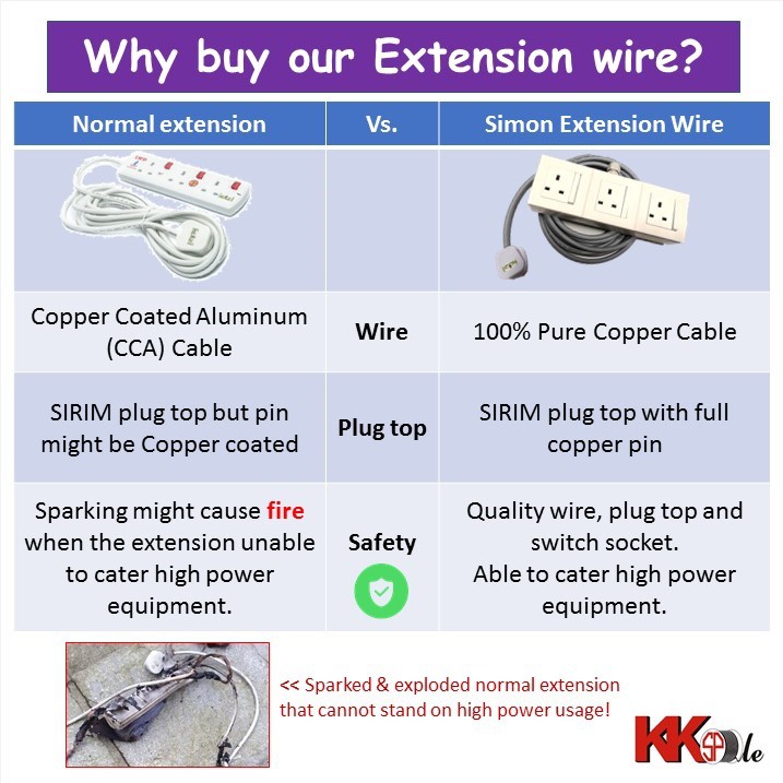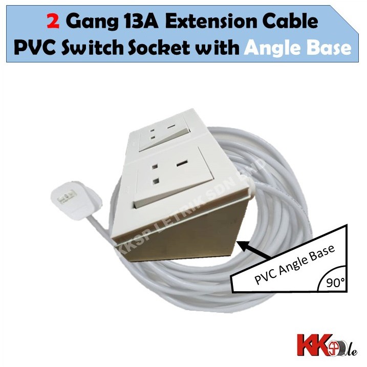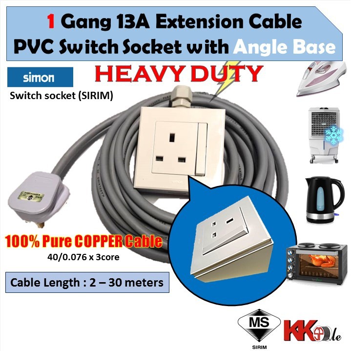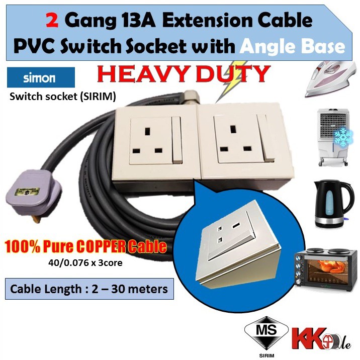 (2800W) Heavy Duty Extension Cable wire with Angle Base - 1 Gang 2 Gang 13A switch socket (1 to 20 Meters)