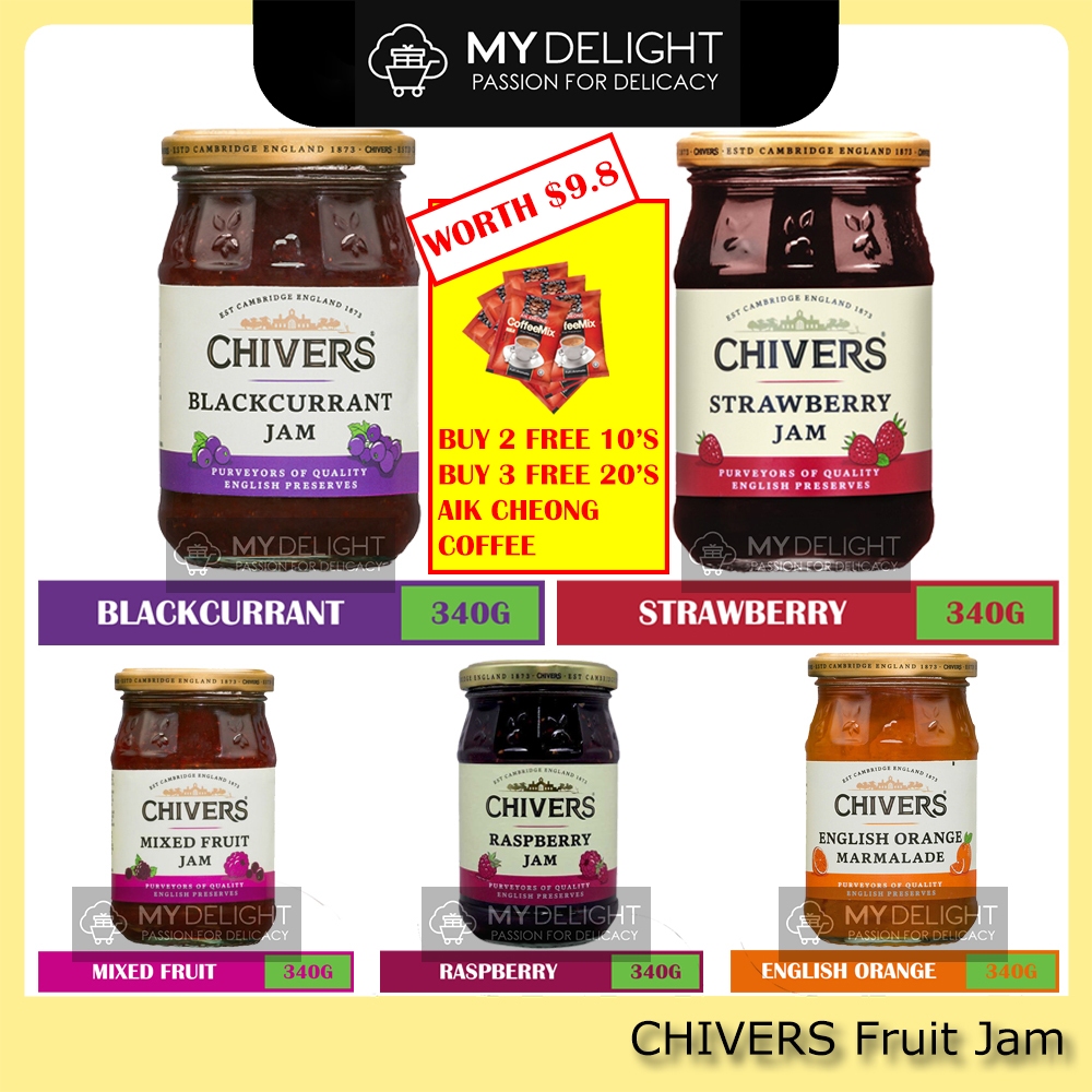 (340g) Chivers Fruit Jam Blackcurrant English Orange Mixed Fruit Raspberry Strawberry