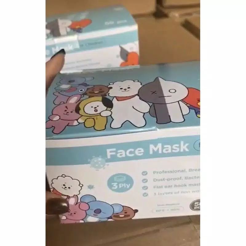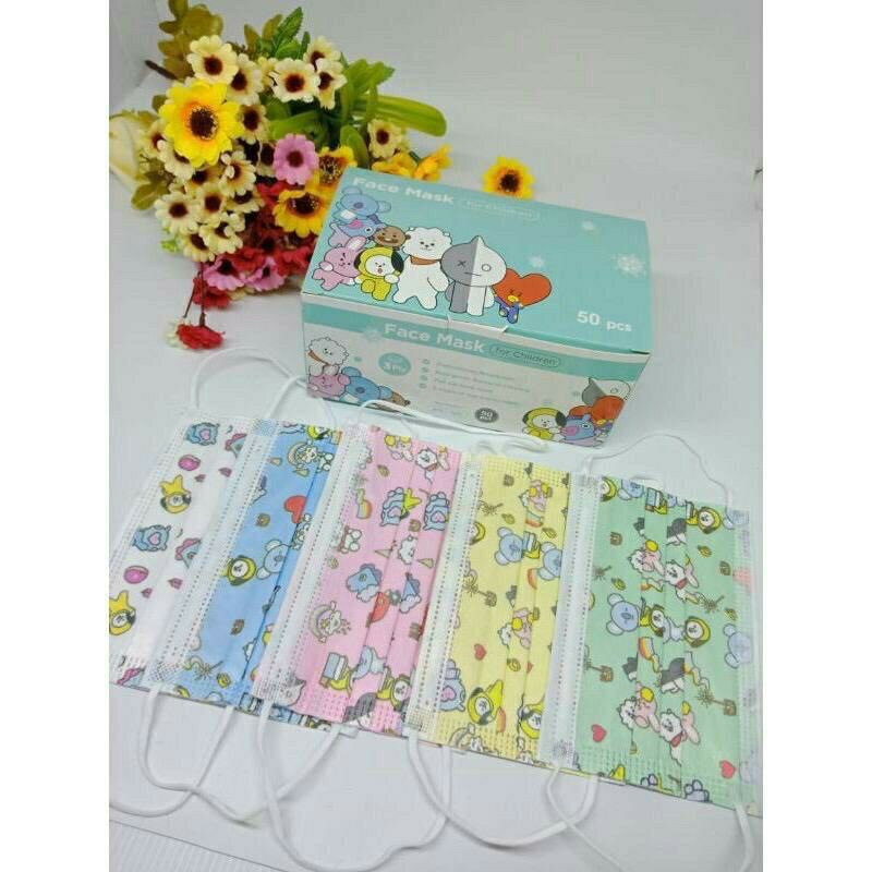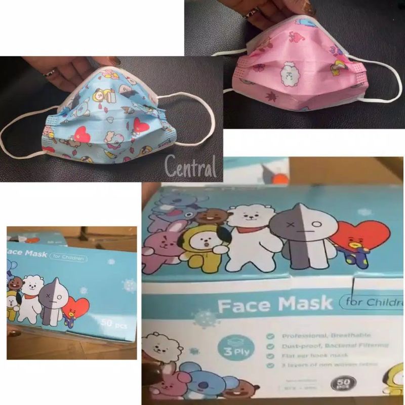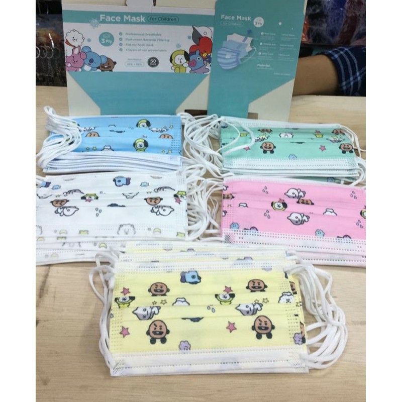 (BTS CHILDREN'S MASK) 3ply Earloop Children's Mask with BTS/BT21 Character Motif