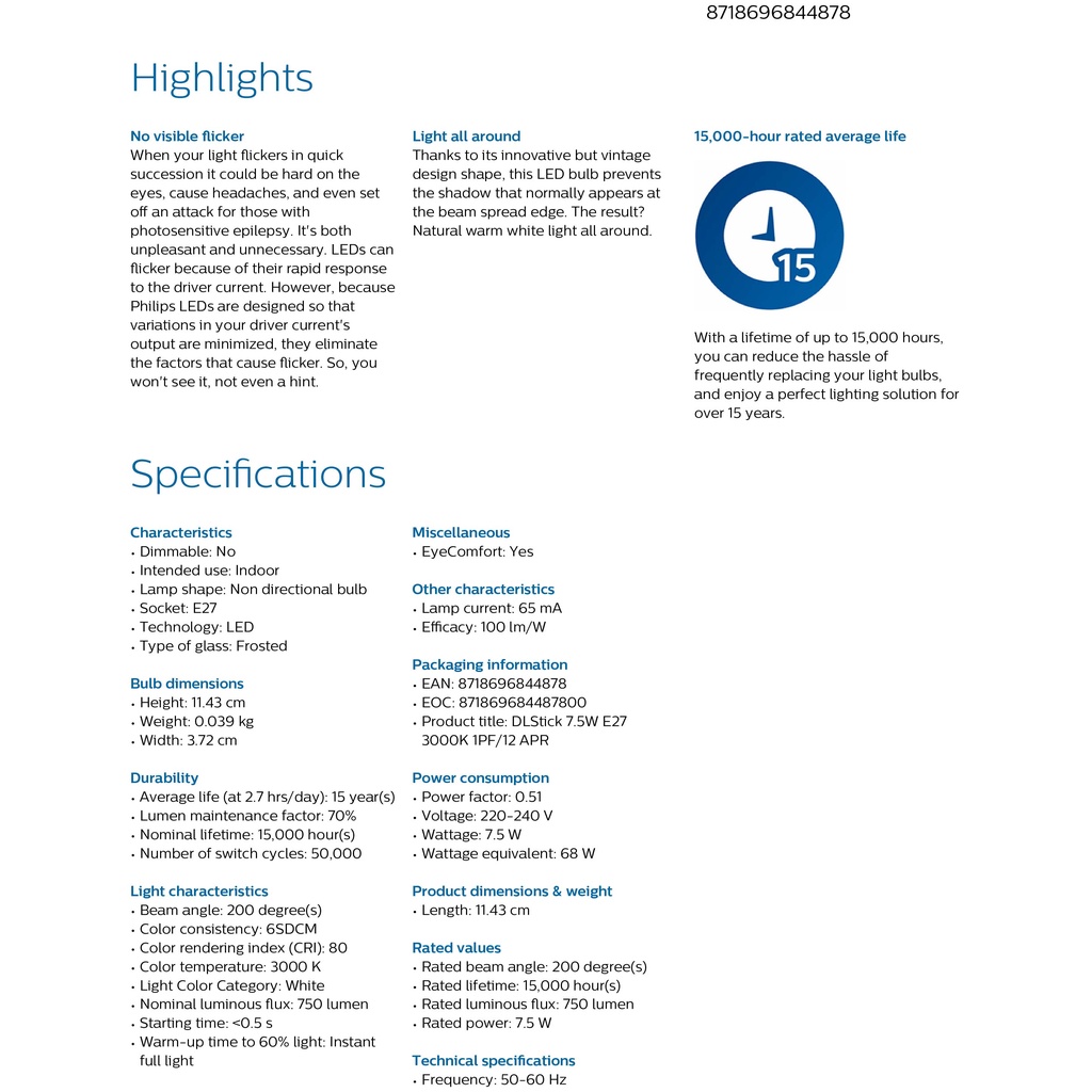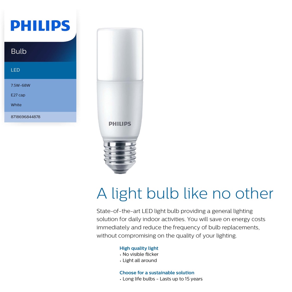 (Bundle Of 2) Philips MyCare LED Stick Light Bulb 7.5W E27 (Available in Cool DayLight / Cool White / White)