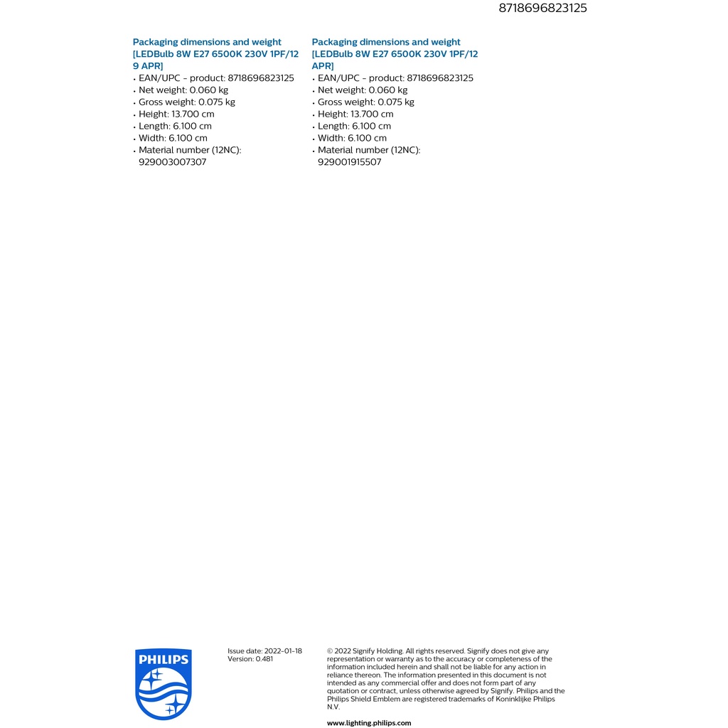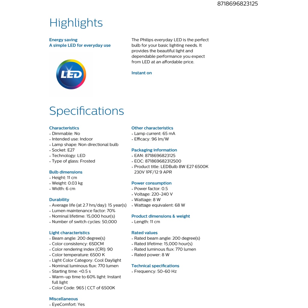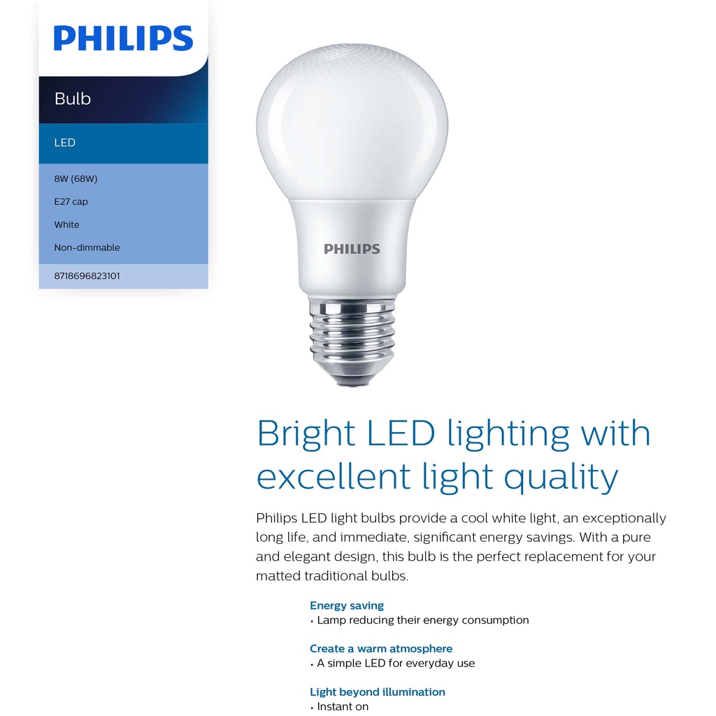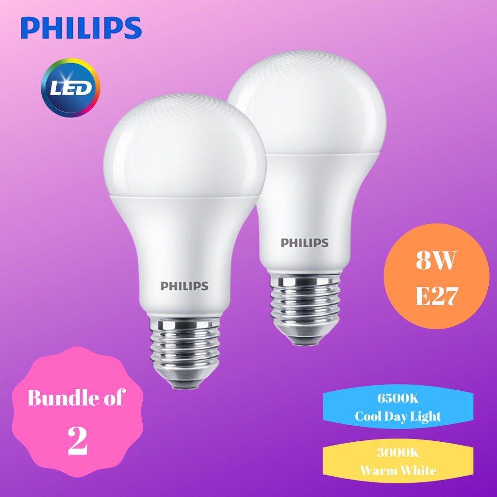 (Bundle of 2) Philips 8W LED E27 cap (Cool Day Light / Warm White) Non-dimmable Bulb