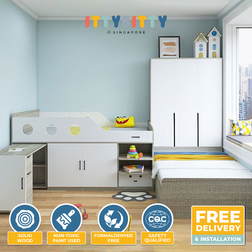 (Free Installation) Customizable Modular Children's bed Series /bed frame/staircase/wardrobe/ladder/ double deck bed