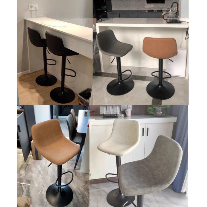 (Free Installation) Nordic Stool Bar chair leather modern simple back lifting swivel high - Pu Barchair