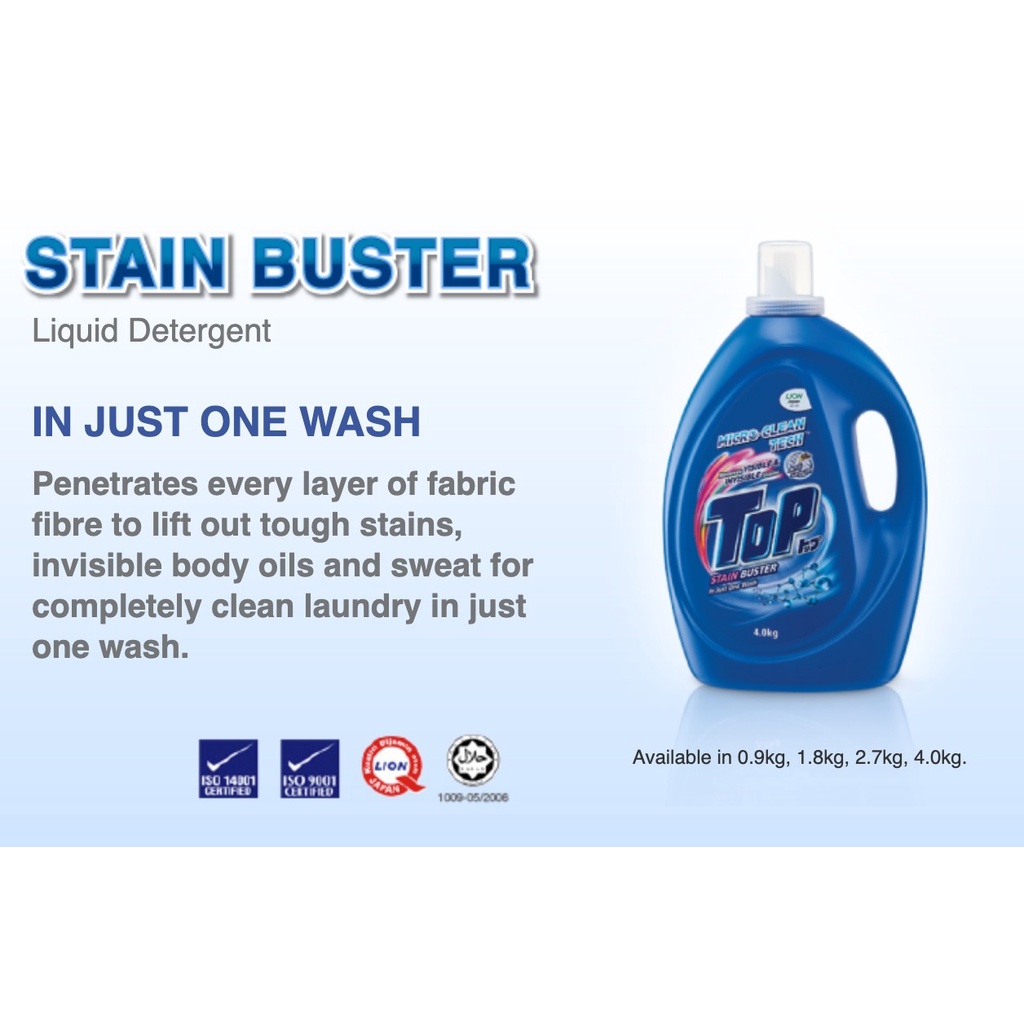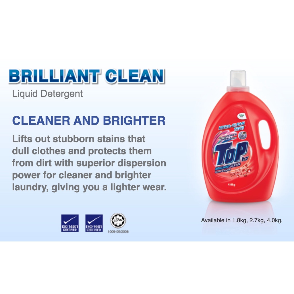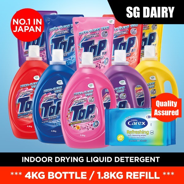 (Free gift) TOP Liquid Detergent 3.8kg/4kg x 4 bottles / 1.8kg x 4 or 8 refill packs