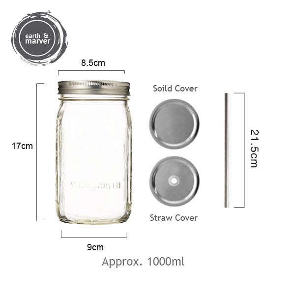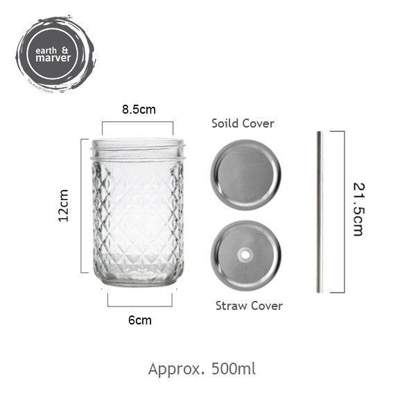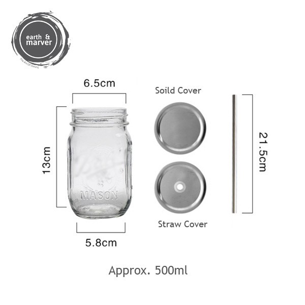 (Local Stock) Glass Jar / Mason Jar /Glass water cup with lid / Juice bottle / Storage Jar / Preserved Jar (Local Stock)