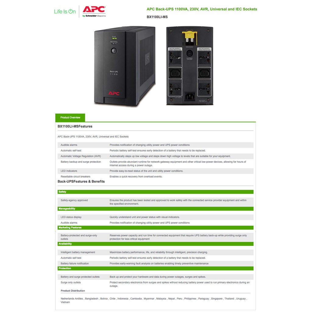 (Original) APC Back-UPS 1100VA BX1200LI-MS 1200VA 230V UPS AVR Universal and IEC Sockets 1200LI-MS BX1200LI