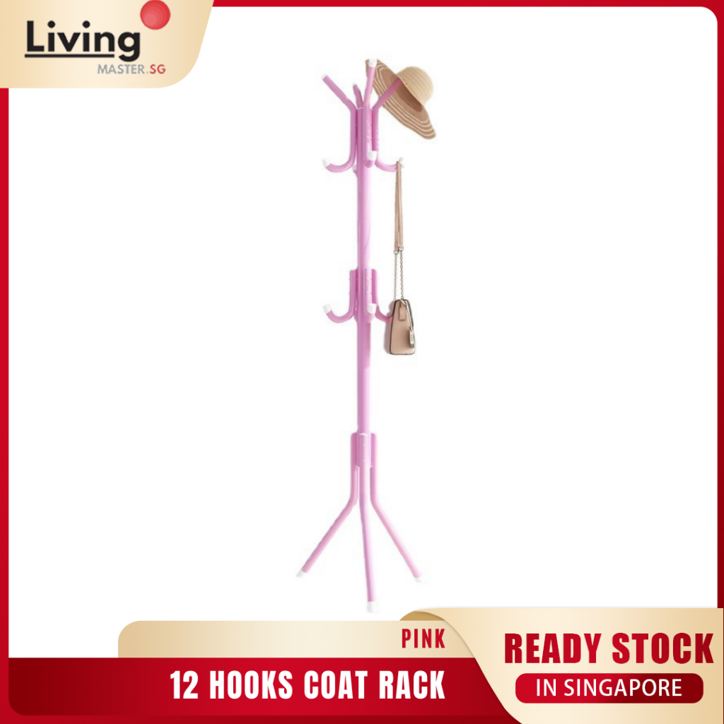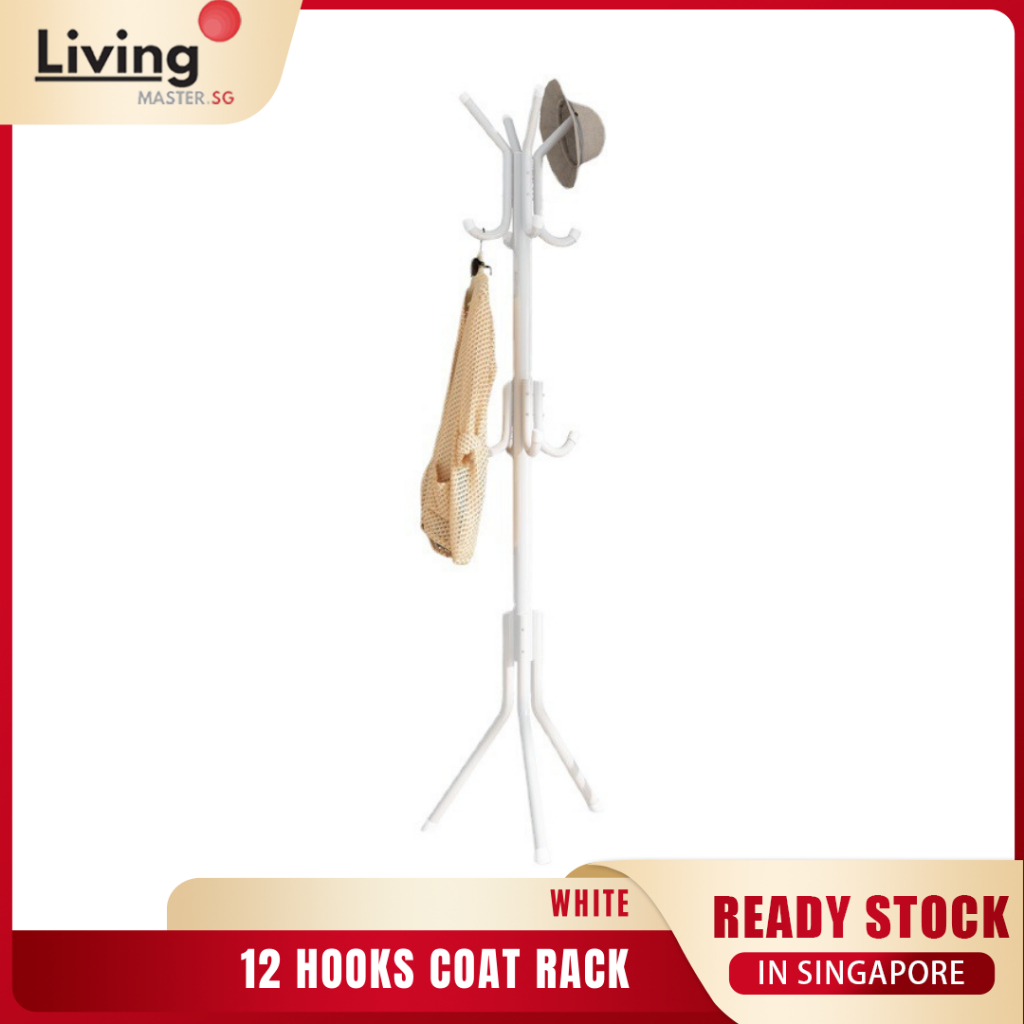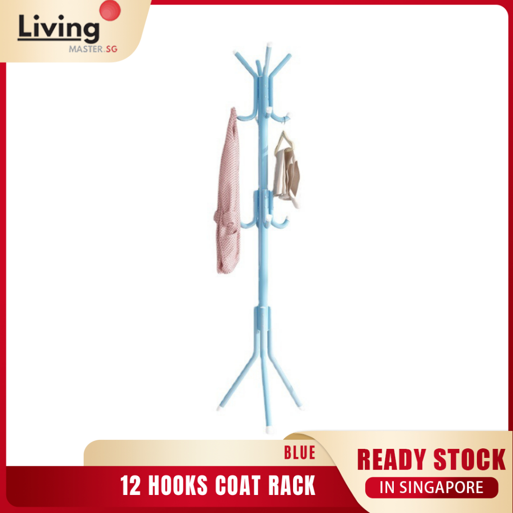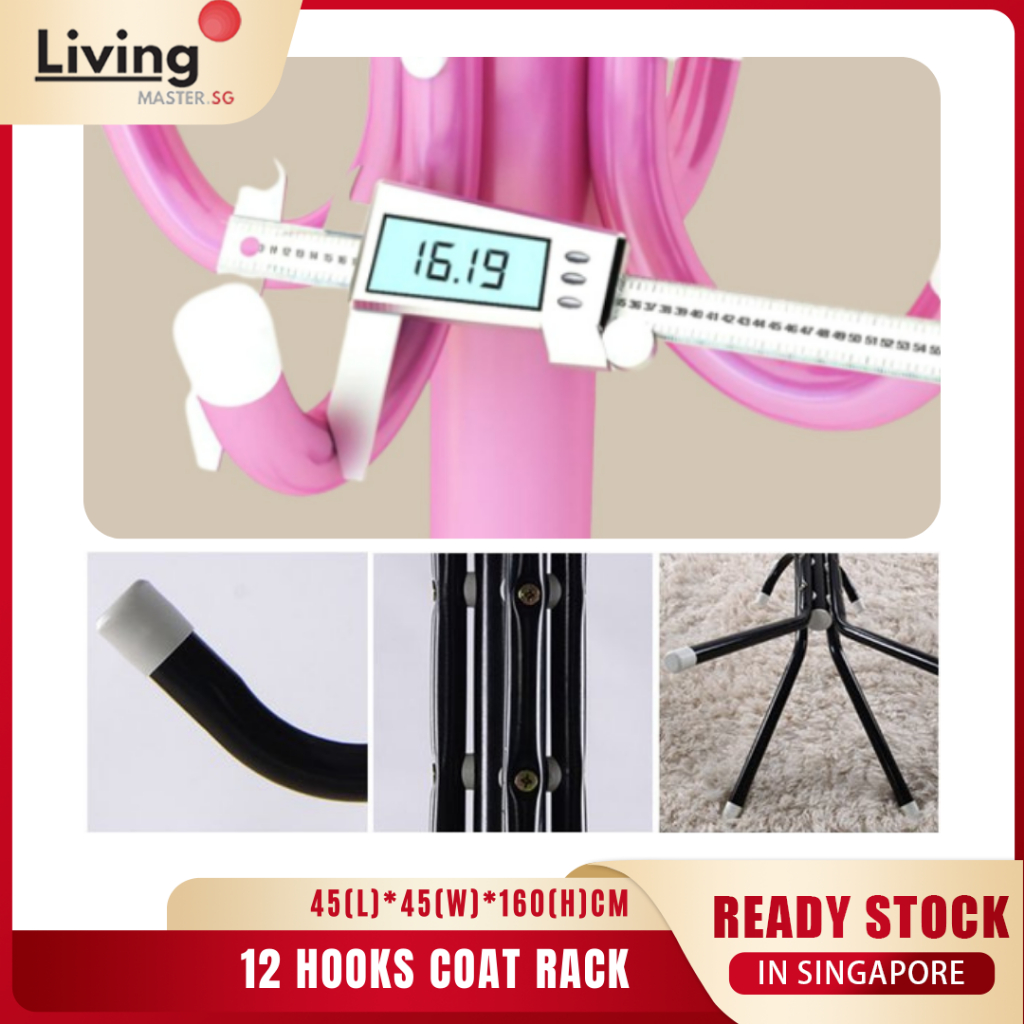 (READY STOCK) 12 Hooks Steel Clothes Rack / Cloth Hanger Stand / Standing Hooks for Clothes Coat Umbrella Bag