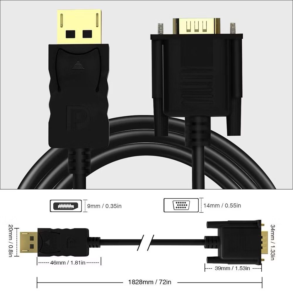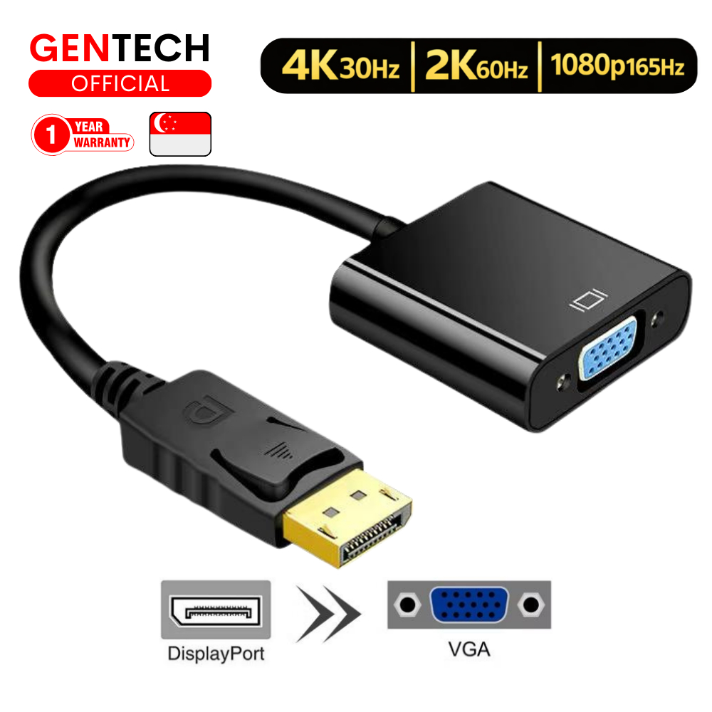 (SG) GENTECH DisplayPort to VGA Video Cable | DP 2K 1080p 60Hz Full Ultra HD High Definition | For Monitor Projector TV