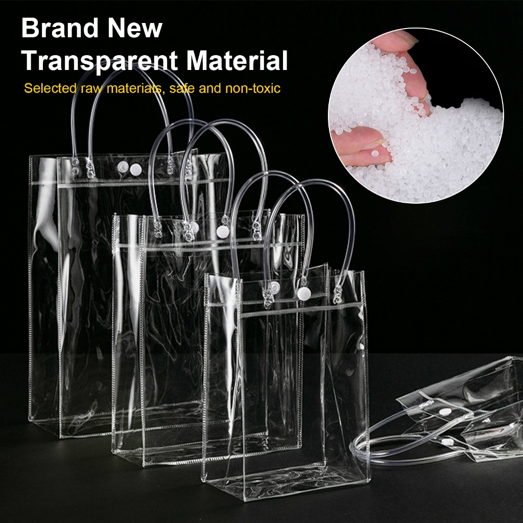 (SG)Transparent PVC Bag With Handle Clear Handle Bag Gift Bag / Tote / Present / Packing Bag Waterproof Kids Goodie Bag