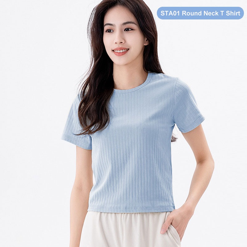 (SG InStock) Round Neck Cooling Cotton Slim Fit Classic T Shirt (Crop Top, Cotton Top, tee , Cotton T Shirt) - STA01