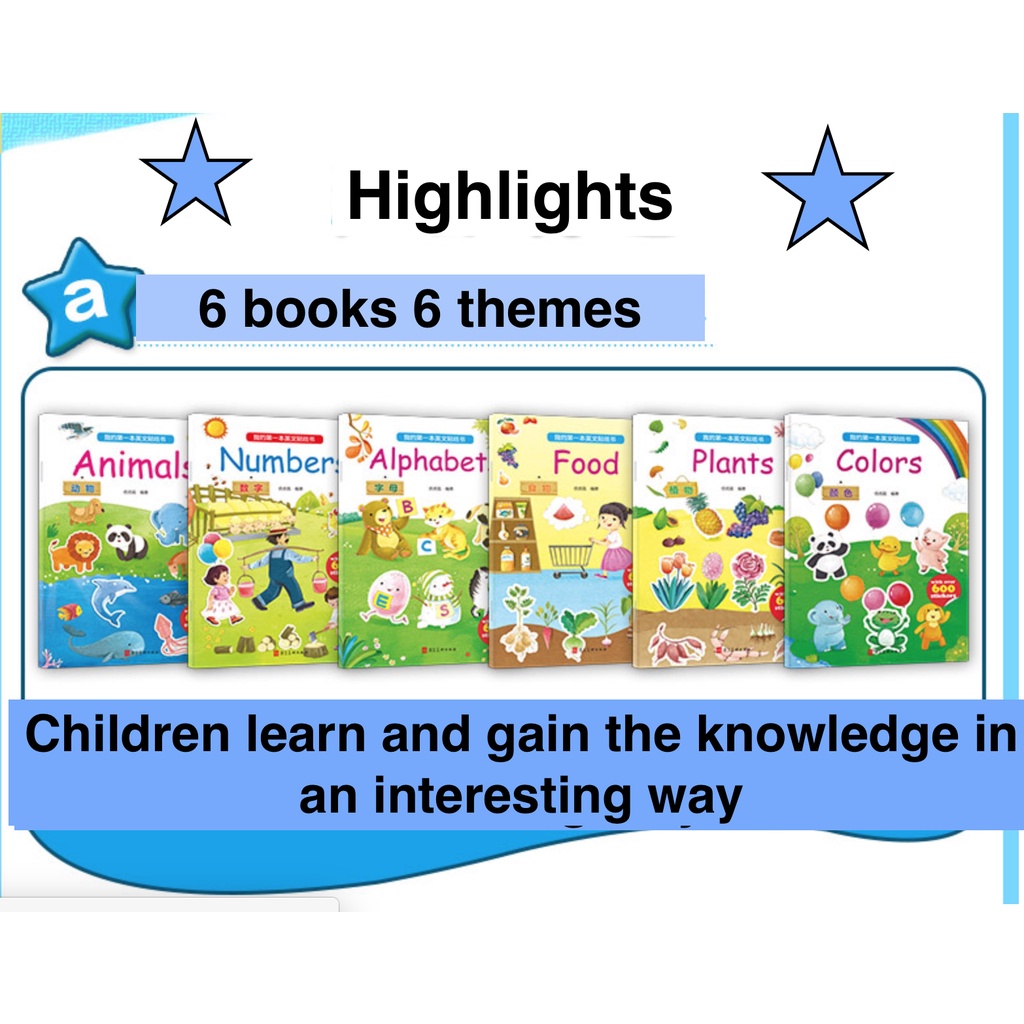 (SG Local Stock) Sticker Book Set with 6 Books Bilingual Vocabulary English & Chinese/ Birthday gift/ Children's day gif