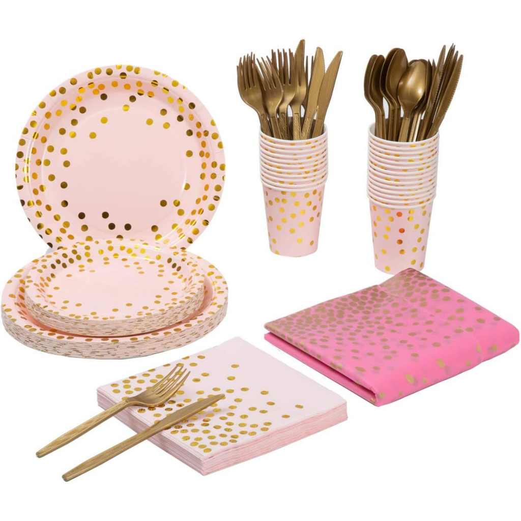 (SG SELLER) 25 pax Disposable Tableware Disposable Paper Plates Party Disposable Cups Cutlery Tablecloth Dinnerware