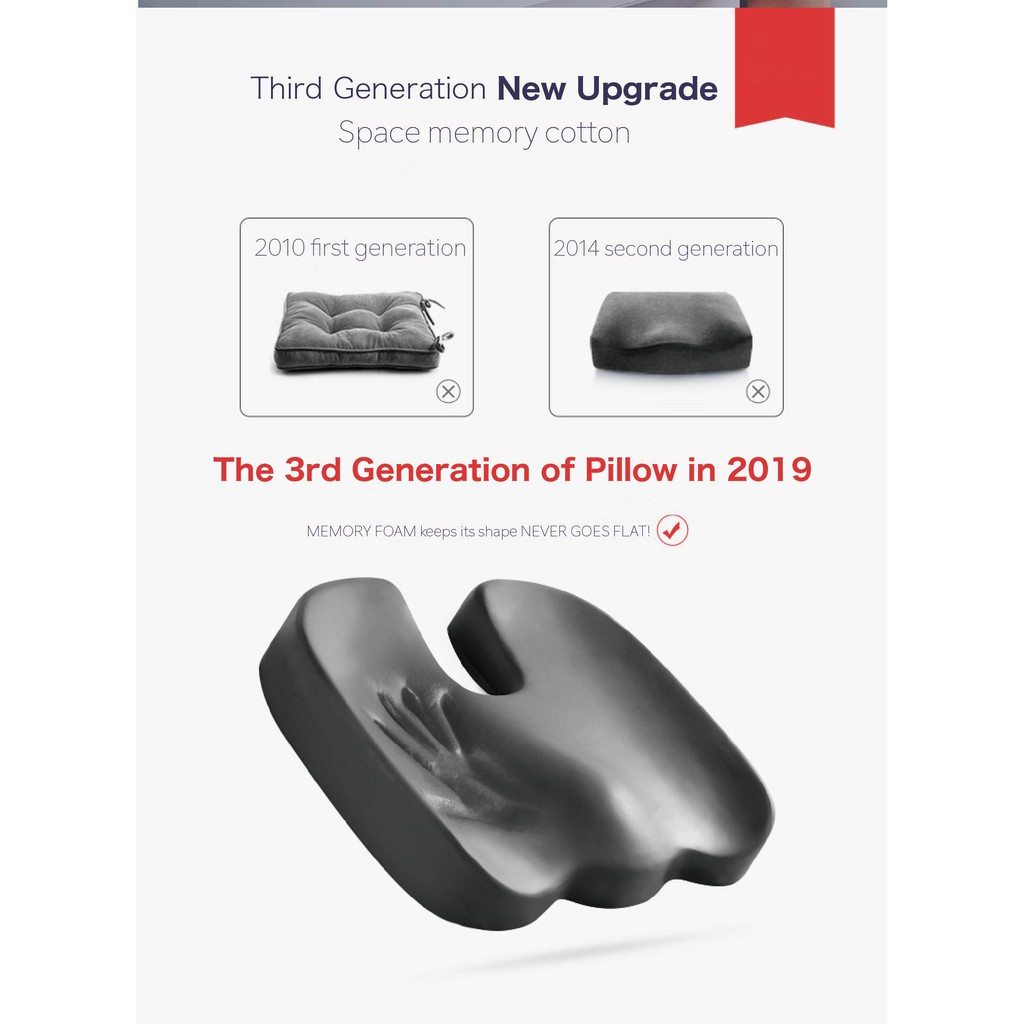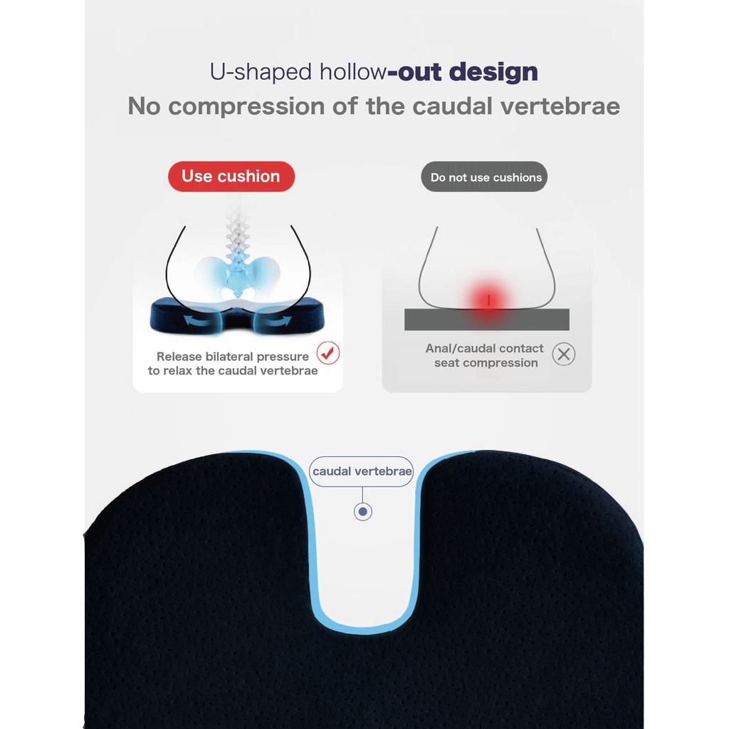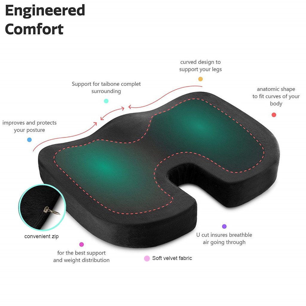 (SG STOCK) Memory Foam Seat Cushion, Chair Cushion, Orthopedic Design for Back, Hip, Tailbone, Sciatica & Coccyx Pain