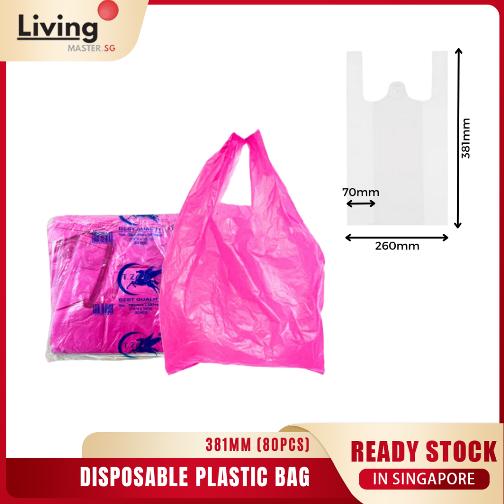 (SG STOCK) Plastic Shopping Bag with Handle 80PCS/60PCS Carrier Bag, Plastic Bag, Singlet Bag Multiple sizes Thick Bag